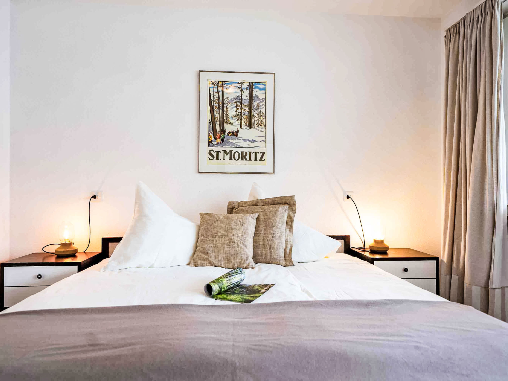 St. Moritz-Bad: Sehr grosses Mehrfamilienhaus "Chesa Ova Cotschna", auf 9 Stockwerken, renoviert im Jahre 2011. Im Ort, 350 m vom Zentrum von St.Moritz-Bad, ruhige, sonnige Lage, 300 m vom See, 900 m vom Skigebiet. Im Hause: Fahrstuhl, Einstellraum für Fahrräder, Skiraum, Zentralheizung. Einkaufsgeschäft 350 m, Supermarkt 800 m, Restaurant 50 m, Bar 350 m, Bäckerei 600 m, Café 350 m, Fahrradverleih 350 m, Bushaltestelle "St. Moritz Bad, Sonne" 50 m, Bahnstation "St. Moritz" 2 km, Hallenbad 400 m, Thermalbad "Heilbadzentrum St. Moritz", See St. Moritzer See 300 m. Golfplatz (18 Loch) 7.3 km, Surfschule 5.3 km, Tennis 1 km, Tennishalle 1 km, Minigolf 400 m, Reitstall 2.8 km, Wanderwege ab Haus, Radweg 200 m, Luftseilbahn 900 m, Skilift, Skipisten 900 m, Skiverleih 350 m, Skibushaltestelle 50 m, Skischule 2 km, Kinderskischule 2 km, Schlittelbahn 5.7 km, Langlaufloipe 100 m, Eisfeld 450 m, Kinderspielplatz 500 m. Nahe gelegene Sehenswürdigkeiten: Segantini Museum 2.2 km, Engadiner Museum 1.2 km, Mili Weber-Haus 2.9 km, Olympia Bob Run mit Museum 2.6 km, Nietzsche Museum in Sils-Maria 9.5 km. Bekannte Skigebiete sind gut erreichbar: Corviglia Piz Nair 900 m, Corvatsch - Furtschellas 6.5 km, Diavolezza - Lagalb 20 km. Bekannte Seen in der Umgebung sind gut erreichbar: St.Moritzer See 300 m, Silvaplaner See 5.2 km, Silser See 9.5 km. Wandergebiete: Stazerwald & Stazersee, Corviglia Piz Nair, Muottas Muragl. Bitte beachten: Die Schlüsselübergabe findet bei der Agentur Interhome in St. Moritz Bad statt. Weitere Unterkünfte sind buchbar.