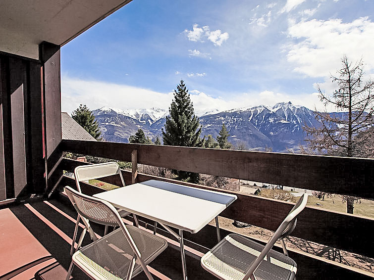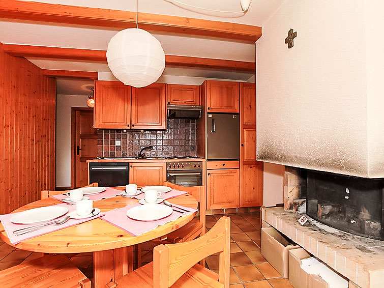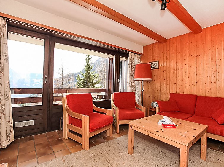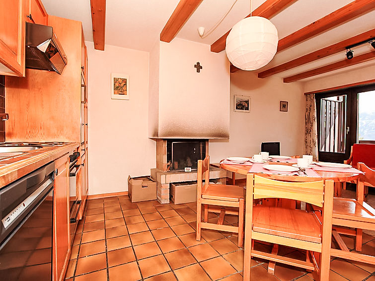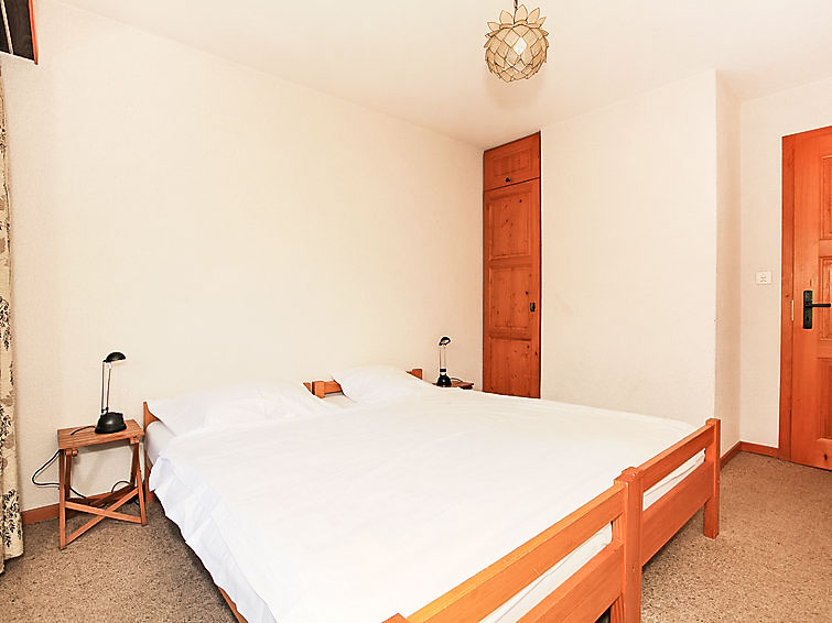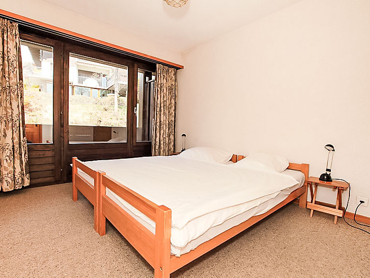 "Zodiaque RS 4", 3-Zimmer-Wohnung 72 m2 im 1. Stock. Einfach und zweckmässig eingerichtet: Wohn-/Esszimmer mit Kabel-TV und Radio. Ausgang zum Balkon, Richtung Süden. 2 Zimmer, jedes Zimmer mit 2 Betten (90 cm, Länge 200 cm). Offene Küche (4 Kochplatten, Backofen, Geschirrspüler, elektrische Kaffeemaschine, Fondue Set (Käse)) mit Esstisch. Bad/WC. Balkon, Südlage. Balkonmöbel. Schöne Sicht auf die Berge. Garage Nr. RS4. Bitte beachten: Nichtraucher-Unterkunft.