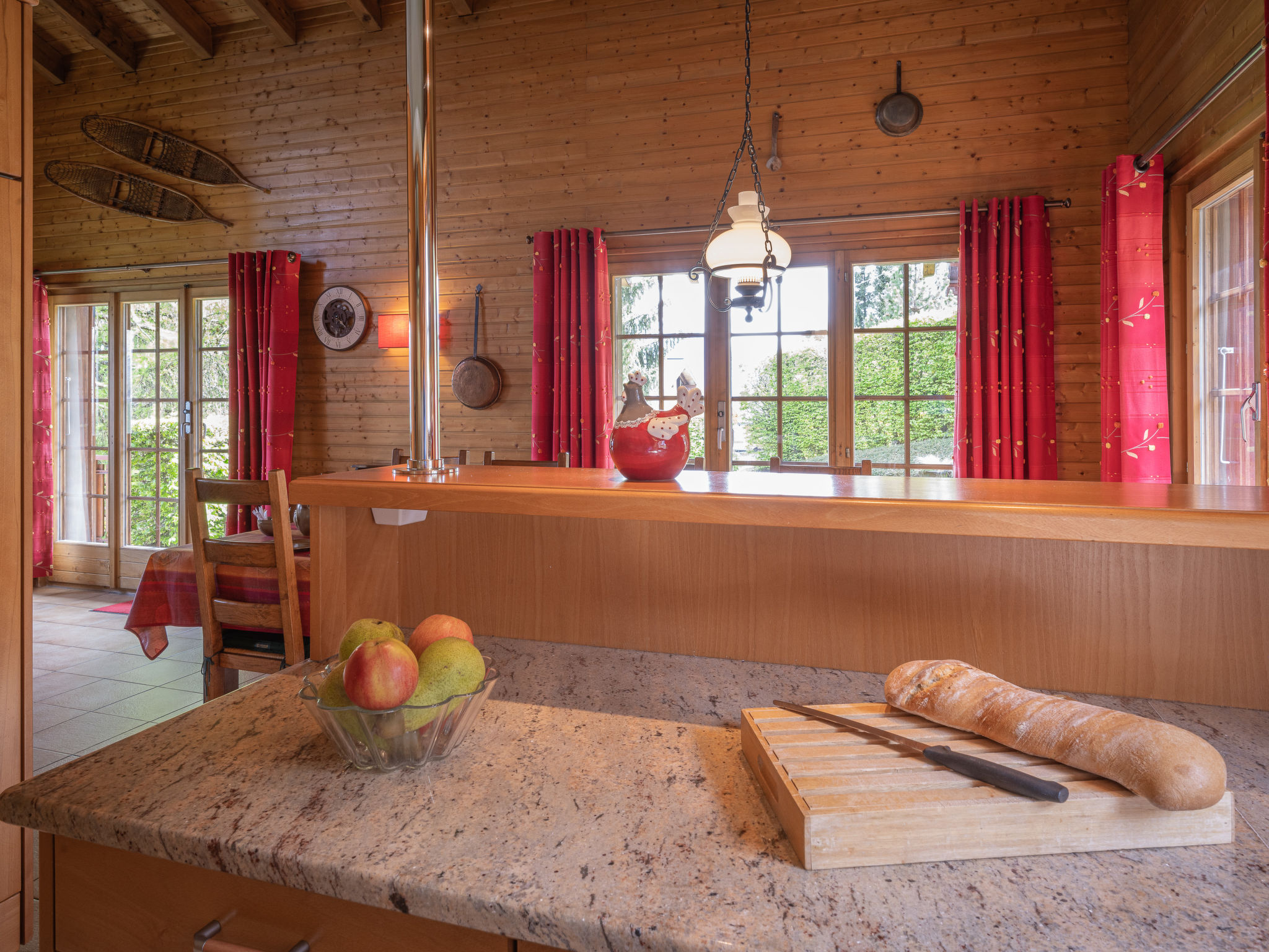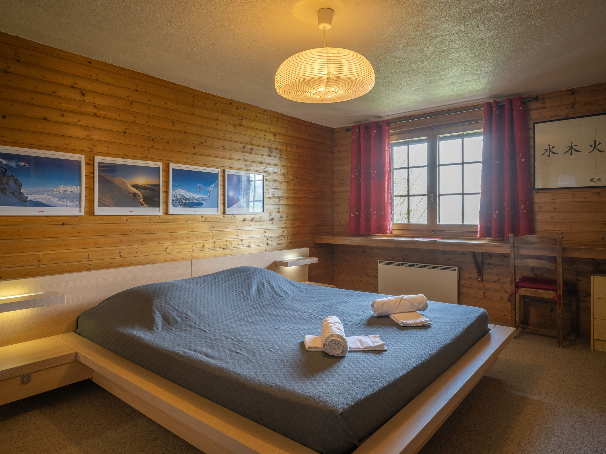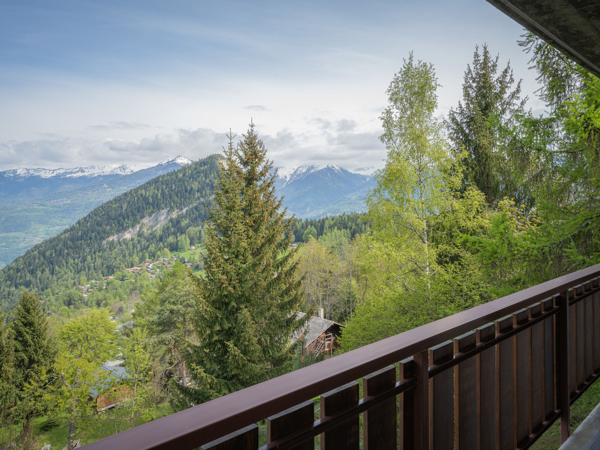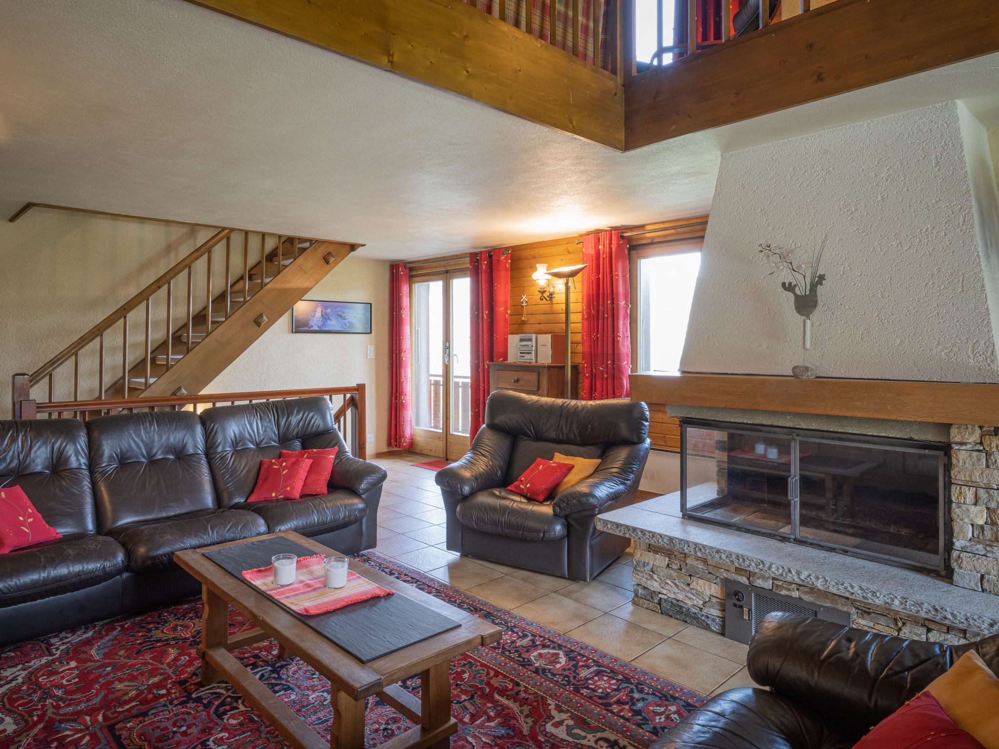 "Falaises", 5-Zimmer-Chalet 200 m2 auf 4 Stockwerken, Südlage. Komfortabel und geschmackvoll eingerichtet: 1 Zimmer mit 1 franz. Bett (160 cm, Länge 200 cm). 1 Zimmer mit 1 franz. Bett (180 cm). 1 Zimmer mit 2 Betten (90 cm, Länge 190 cm). Bad/WC, Doppelwaschbecken. E-Heizung. Unteres Geschoss: 1 Zimmer, ohne Fenster mit 2 Betten (90 cm, Länge 200 cm). Dusche/WC. Obergeschoss: Eingang. Grosses Wohn-/Esszimmer mit Essecke. Ausgang zum Balkon, zur Terrasse. Grosse, offene Küche (Backofen, Geschirrspüler, 4 Induktionskochplatten, Toaster, Wasserkocher, Mikrowelle, elektrische Kaffeemaschine, Kapseln für die Kaffeemaschine (Nespresso) extra, Racletteofen, Fondue Set (Chinoise, Käse)). Sep. WC. 2. Obergeschoss: Galerie mit Kabel-TV, Flachbildschirm, Video, Stereoanlage und DVD. Terrassenmöbel, Gartengrill, Liegestühle (4). Sehr schöne Sicht auf die Berge und das Tal. Zur Verfügung: Waschmaschine, Wäschetrockner, Bügeleisen, Kinderhochstuhl, Babybett, Haartrockner, Wickelkommode. Internet (Wireless LAN, gratis). Bitte beachten: Nichtraucher-Unterkunft.