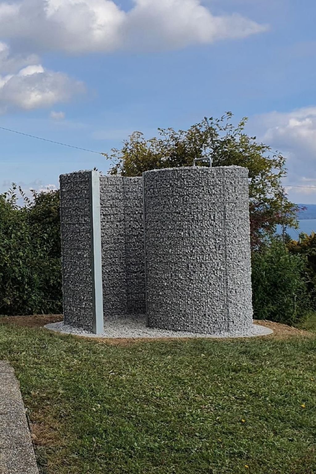 - komplett eingefriedet (mit Mauer, Zaun oder Hecke)