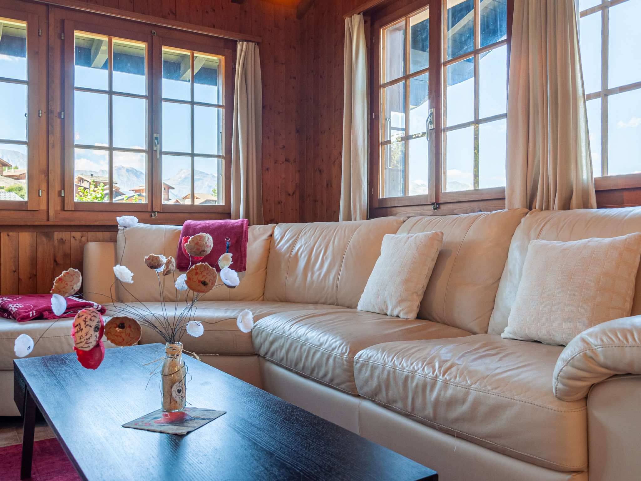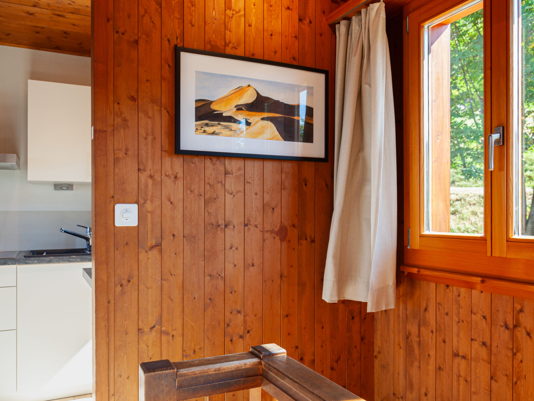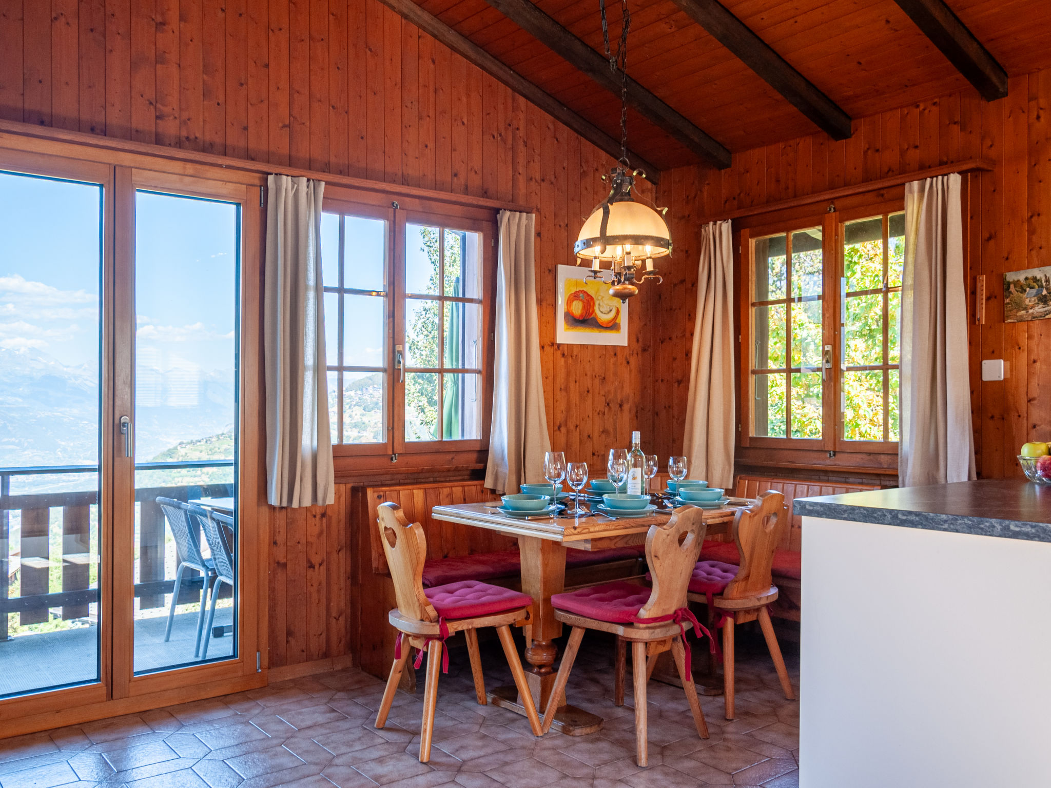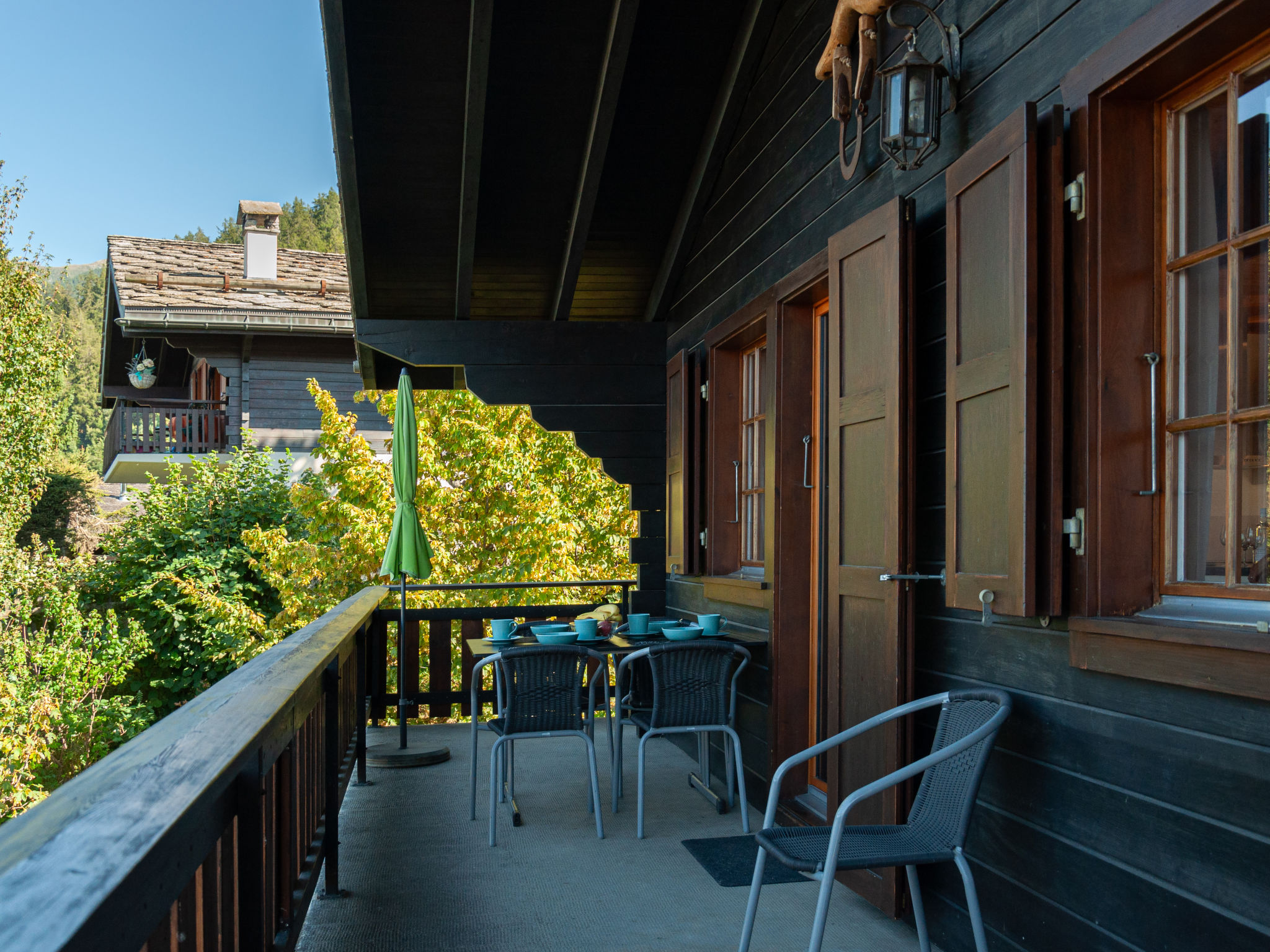"Mustela", 4-Zimmer-Chalet 95 m2 auf 2 Stockwerken. Teilweise renoviert im Jahre 2019, schön und gemütlich eingerichtet: Wohn-/Esszimmer mit offenem Kamin, Kabel-TV und DVD. Küche (Backofen, Geschirrspüler, 4 Glaskeramikplatten, Toaster, Wasserkocher, elektrische Kaffeemaschine, Kapseln für die Kaffeemaschine (Delizio) extra, Racletteofen, Fondue Set (Käse)). Dusche/WC. E-Heizung. Unteres Geschoss: 2 Zimmer, jedes Zimmer mit 2 Betten (90 cm, Länge 190 cm). 1 Zimmer mit 1 x 2 Etagenbetten (80 cm, Länge 190 cm). Dusche/WC. Balkon, Nordlage und Westlage Balkon, Ostlage. Terrassenmöbel, Balkonmöbel, Gartengrill, Liegestühle (3). Sehr schöne Sicht auf die Berge und das Tal. Zur Verfügung: Kinderhochstuhl, Babybett, Haartrockner. Internet (Wireless LAN). Parkplatz (2 Autos). Bitte beachten: Nichtraucher-Unterkunft.