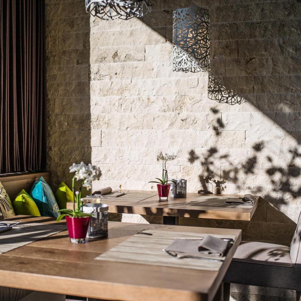 Das Ristorante Lago verfügt über eine große Seeterrasse und bietet moderne Fusionsküche, die vom Mittelmeer inspiriert ist, sowie einige Klassiker aus Angus Beef.