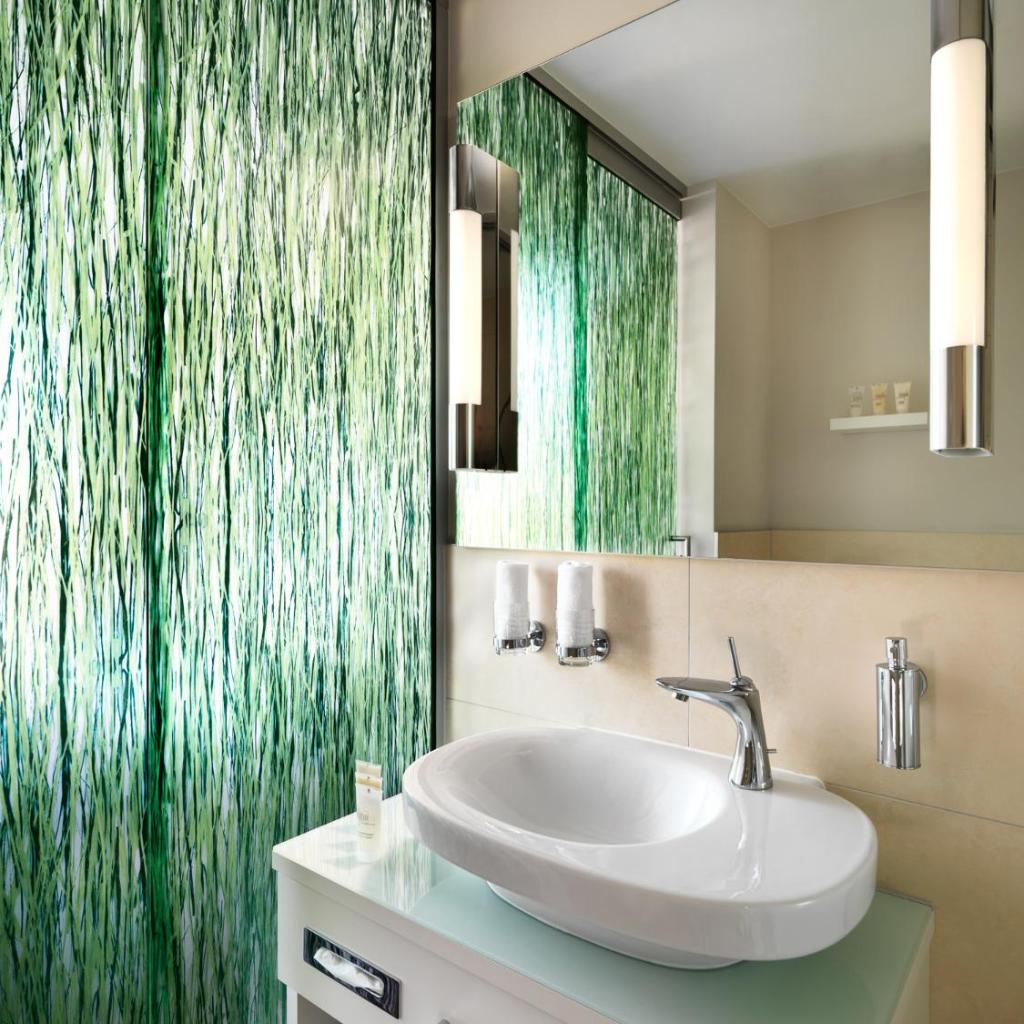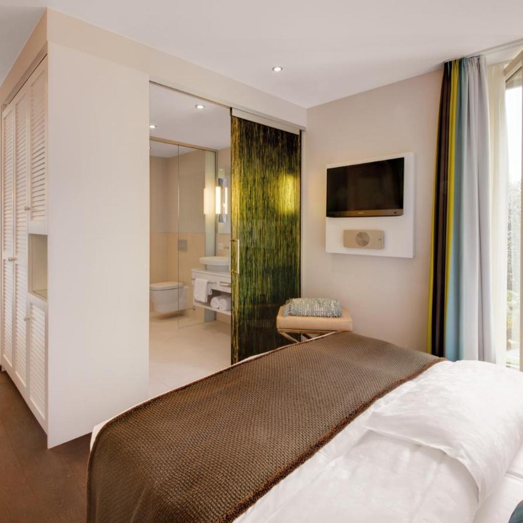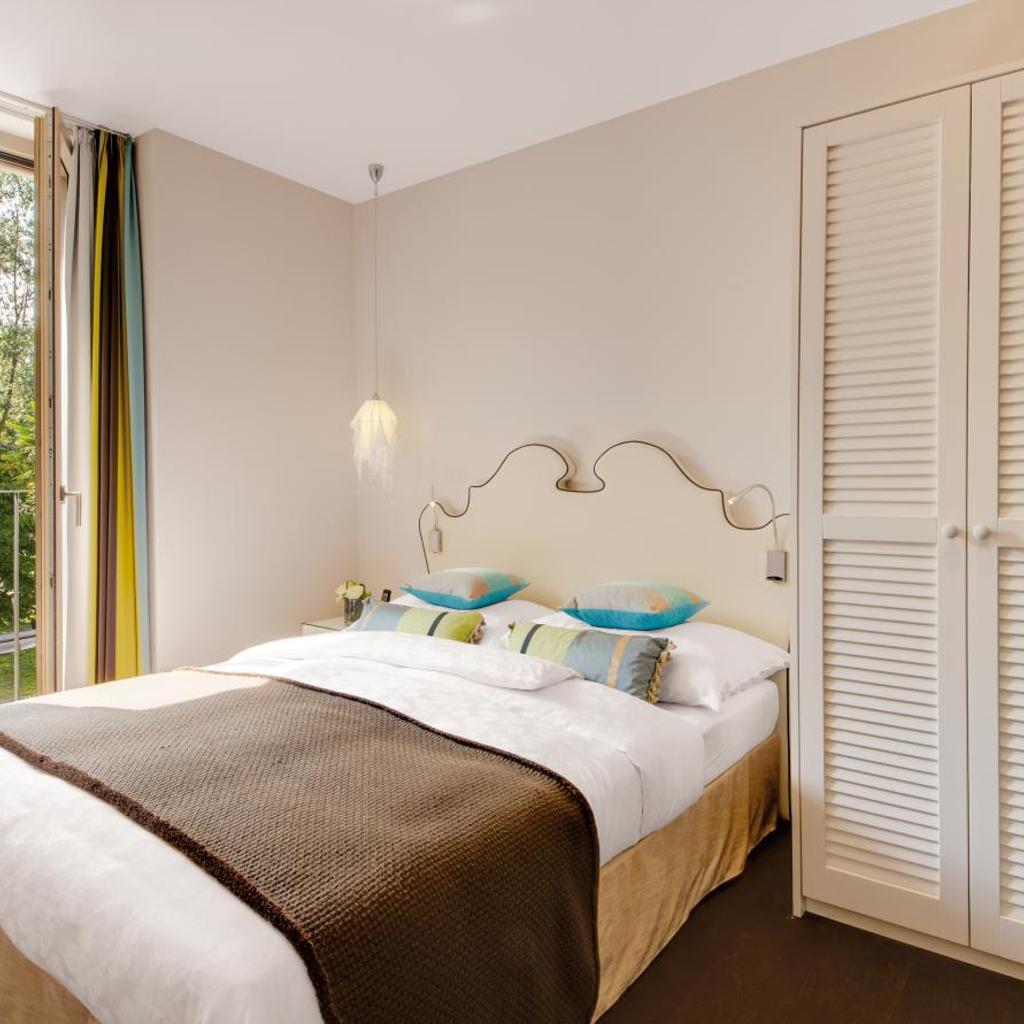 Die Zimmer sind mit geräuchertem Eichenparkett und Glaselementen ausgestattet. Zur Ausstattung gehören eine Klimaanlage, ein Flachbild-TV sowie ein CD- und DVD-Player.