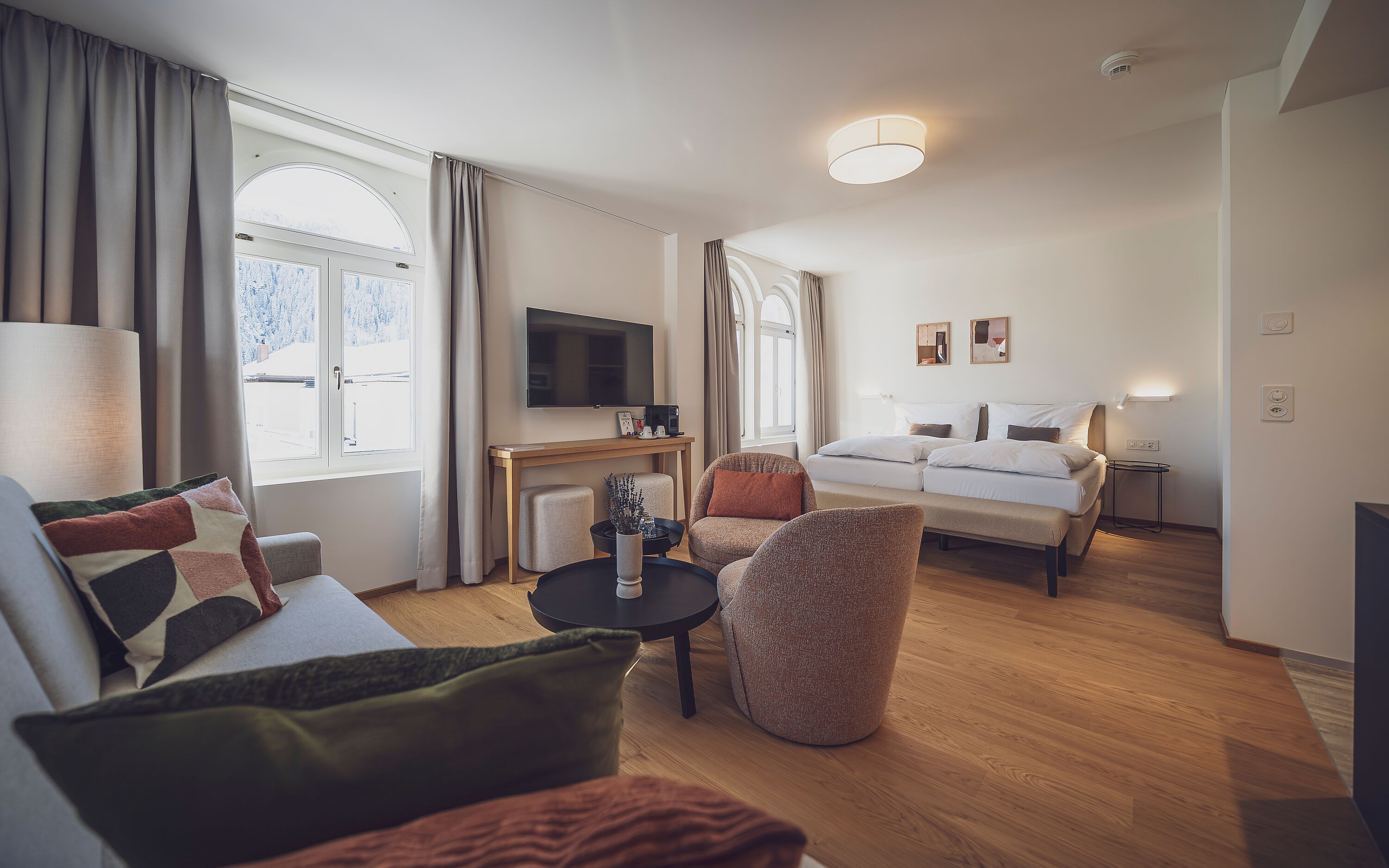 Entdeckt die Kombination aus frischen, trendigen Farben und modernem Design, gepaart mit dem charmanten, historischen Ambiente und der natürlichen Schönheit der Bündner Berge. Ab 26. Dezember 2024 erlebt Ihr dieses Flair im 3-Sterne Superior Hotel Joseph´s House in Davos. Das Jugendstilhotel überrascht nach dem zweijährigen Umbau mit vielen Neuigkeiten. Die neue Ausstattung vereint modernes Design mit der langen Geschichte des Gebäudes. Mit seiner einzigartigen Lage direkt im Zentrum von Davos Platz und nahe dem Jakobshorn überzeugt das Hotel Joseph´s House aktive Gäste sowie Geniesser.Das Hotel liegt in Davos Platz, in der Nähe des Postplatzes mit zahlreichen Einkaufsmöglichkeiten. Die Jakobshornbahn und der Bahnhof Davos Platz sind in einigen Gehminuten erreichbar. Für Gäste, die mit dem Auto anreisen, stehen Tiefgaragenstellplätze zur Verfügung.