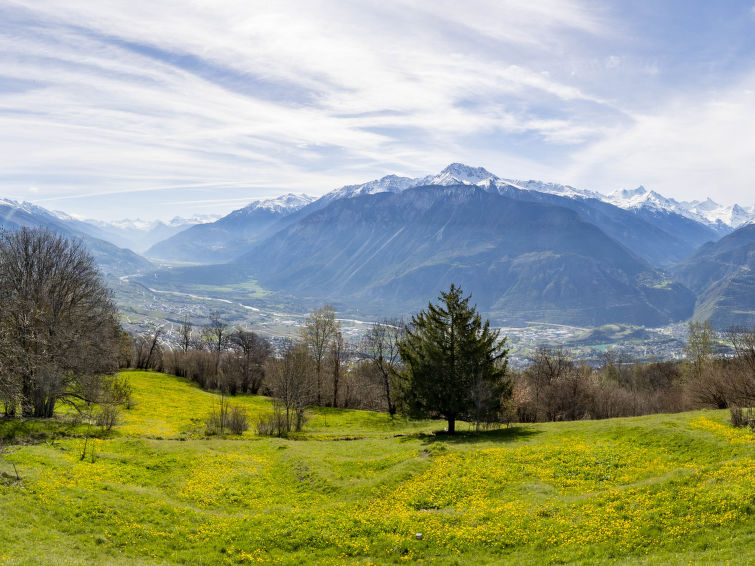 Schönes, komfortables Chalet "Le Fontany", auf 2 Stockwerken, einseitig angebaut, umgeben von Bäumen und Wiesen. Unterhalb von Crans-Montana, im Ortsteil Randogne, 3.5 km vom Zentrum von Montana, alleinstehende, ruhige, sonnige Lage, verkehrsberuhigte Zone, 4.2 km vom See, 3 km vom Skigebiet, im Grünen, Richtung Süden. Zur Mitbenutzung: Naturgarten. Im Hause: Zentralheizung. 10 m lange Zufahrt bis zum Haus, im Winter bis 30 m. Treppenweg (10 Stufen) bis zum Haus. Einkaufsgeschäft 3.4 km, Supermarkt 3.6 km, Restaurant 3.4 km, Bäckerei 2.8 km, Bushaltestelle "Randogne-Village" 700 m, Bahnstation "Funiculaire Bluche" 1.6 km, Badesee "Moubra" 4.5 km, See Grenon 4.2 km. Golfplatz (18 Loch) 6 km, Skisportanlagen 3.2 km. Bekannte Seen in der Umgebung sind gut erreichbar: Lac de la Moubra 4.5 km, Etang Long 6 km. Bitte beachten: Fahrzeug empfohlen.