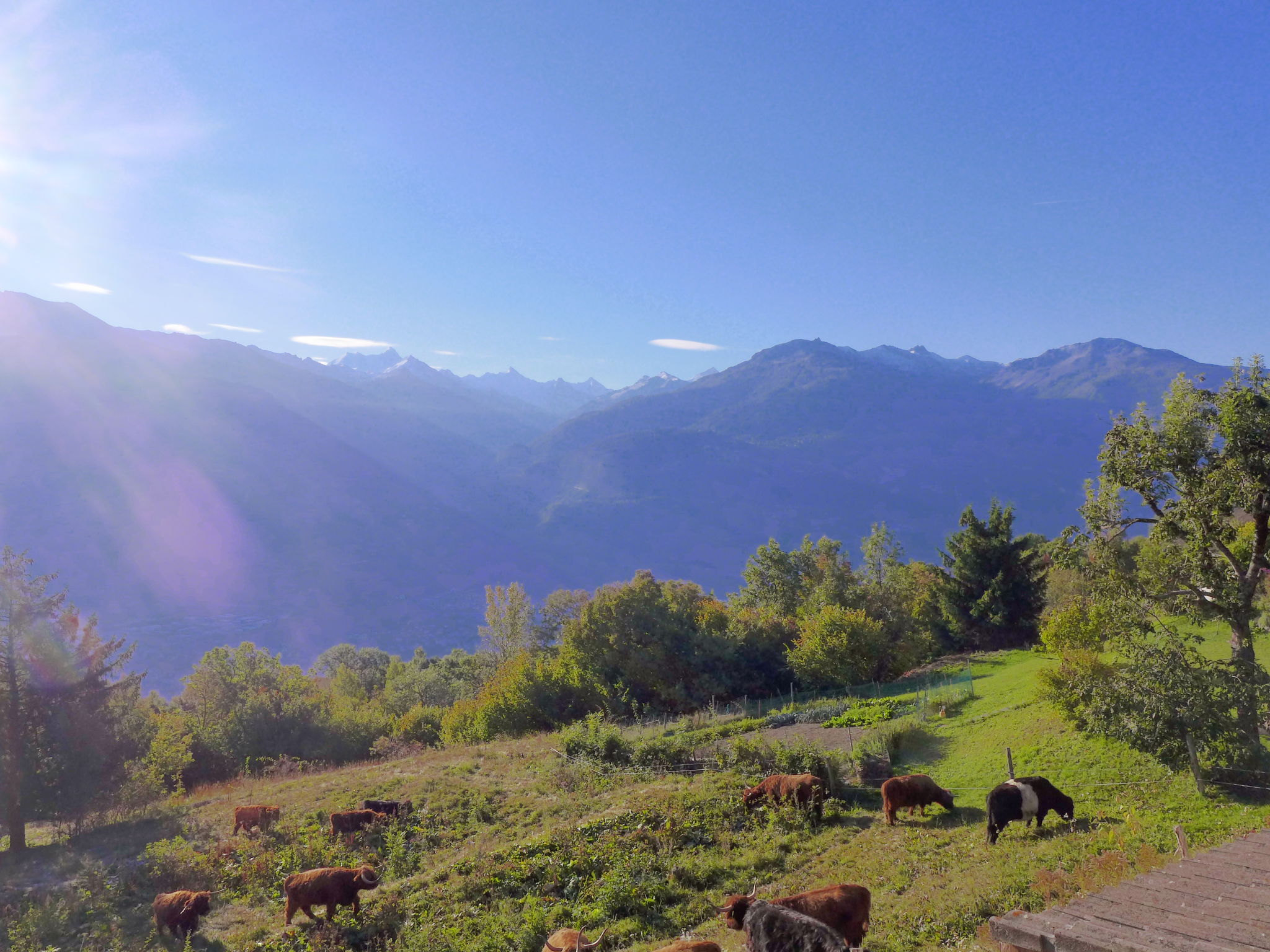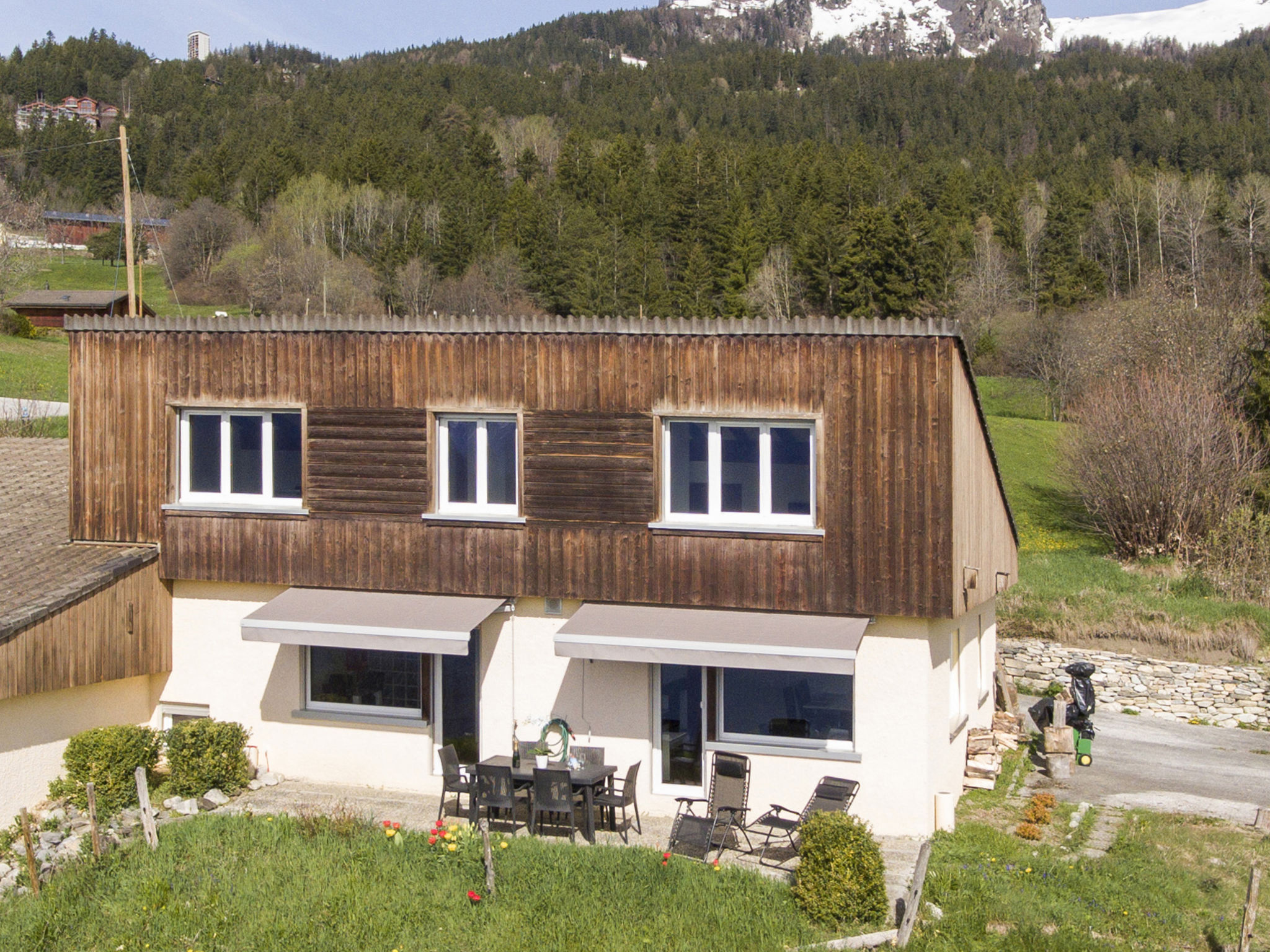 "Maison Le Fontany", 4-Zimmer-Chalet 110 m2 auf 2 Stockwerken, Südlage. Geräumig und hell, teilweise renoviert im Jahre 2023, schön und modern eingerichtet: Wohn-/Esszimmer mit offenem Kamin und Kabel-TV. Ausgang zur Terrasse, Richtung Süden. 1 Doppelzimmer, Richtung Osten mit 1 Doppelbett (160 cm, Länge 200 cm). Wohnküche (Geschirrspüler, 4 Glaskeramikplatten, Toaster, Wasserkocher, Mikrowelle, Tiefkühler, elektrische Kaffeemaschine, Kapseln für die Kaffeemaschine (Delizio (Migros)) extra, Racletteofen, Fondue Set (Käse)) mit Esstisch. Ausgang zur Terrasse, Richtung Süden. Bad/WC. Heizung. Obergeschoss: (geländerlose Treppe) 1 Zimmer, Richtung Süden mit 1 Doppelbett (160 cm, Länge 200 cm), Waschbecken und Dusche. 1 Zimmer, Richtung Süden mit 1 Doppelbett (160 cm, Länge 200 cm), Waschbecken. Sep. WC. Parkettboden. Terrasse 30 m2. Terrassenmöbel, Gartengrill (mobil), Liegestühle (2). Sehr schöne Panoramasicht auf die Berge, das Tal und die Landschaft. Zur Verfügung: Waschmaschine, Wäschetrockner, Haartrockner. Internet (WLAN, gratis). Parkplatz (2 Autos) beim Haus, im Winter in 30 m. Bitte beachten: Nichtraucher-Haus. Maximal 2 Haustiere/Hunde erlaubt. Auf dem eingezäunten Grundstück vor dem Haus, können sich möglicherweise Kühe befinden.
