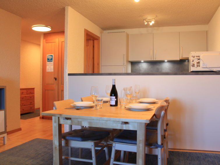 "Ambassadeur 15", 3-Zimmer-Wohnung 70 m2 im 3. Stock, Südlage. Schön und gemütlich eingerichtet: Wohn-/Esszimmer mit offenem Kamin, Bibliothek und TV (Flachbildschirm), Radio, CD und DVD. Ausgang zum Balkon, Richtung Süden. 1 Doppelzimmer mit 2 Betten (90 cm, Länge 190 cm). Ausgang zum Balkon, Richtung Norden. 1 Zimmer mit 2 Betten (90 cm, Länge 190 cm). Kleine, offene Küche (4 Kochplatten, Backofen, Geschirrspüler, Mikrowelle, Racletteofen) mit Durchreiche. Bad/WC, sep. WC. Balkon 9 m2, Südlage Balkon 8 m2, Nordlage. Terrassenmöbel. Sehr schöne Panoramasicht auf die Berge und die Landschaft. Zur Verfügung: Haartrockner. Internet (Wireless LAN, gratis). Garage Nr. 9, Höhe 200 cm, Breite 180 cm. Bitte beachten: Nichtraucher-Unterkunft, Parkplatz nur für kleine Wagen. Maximale Länge für Garagen Platz : 380cm.