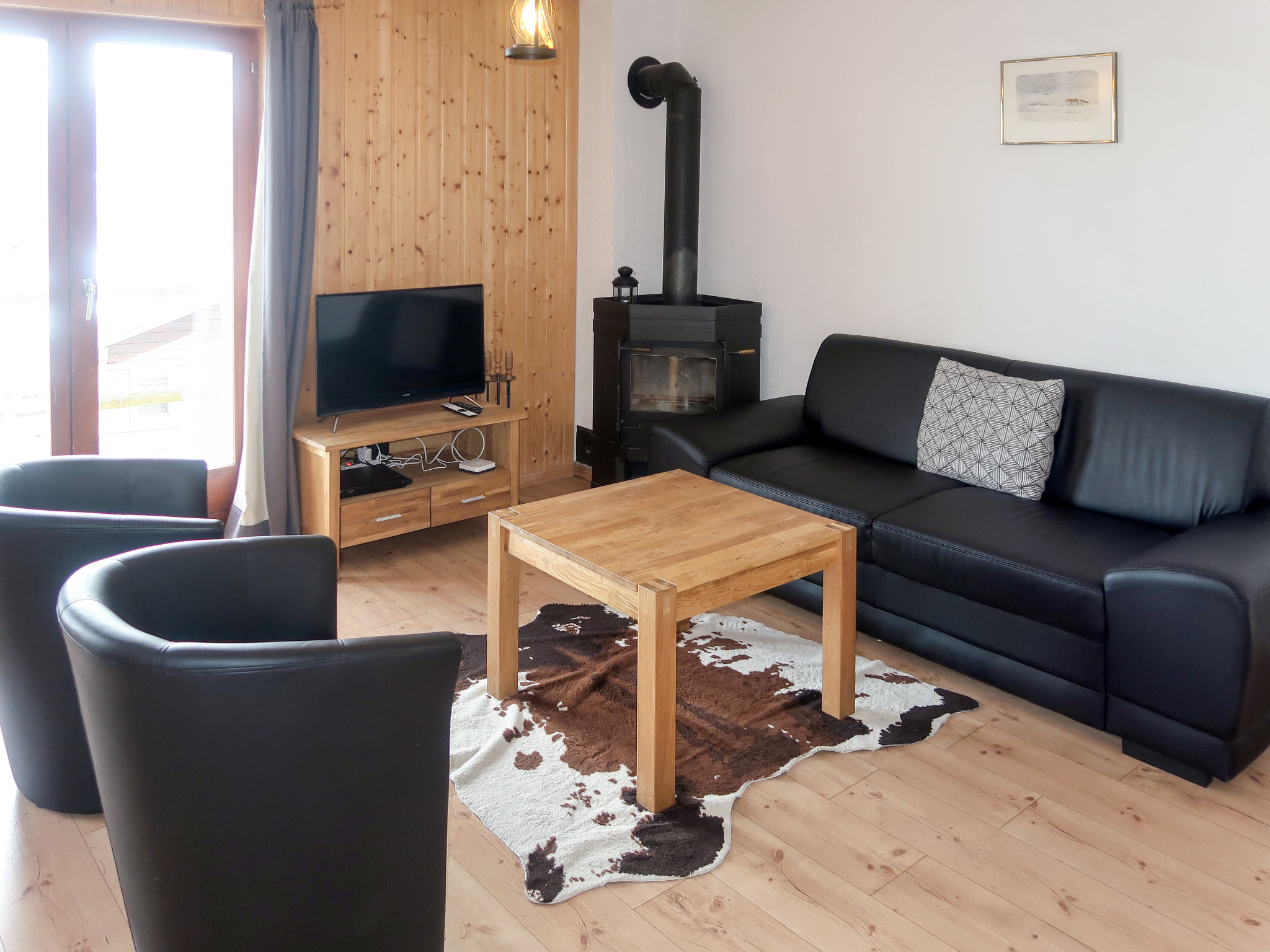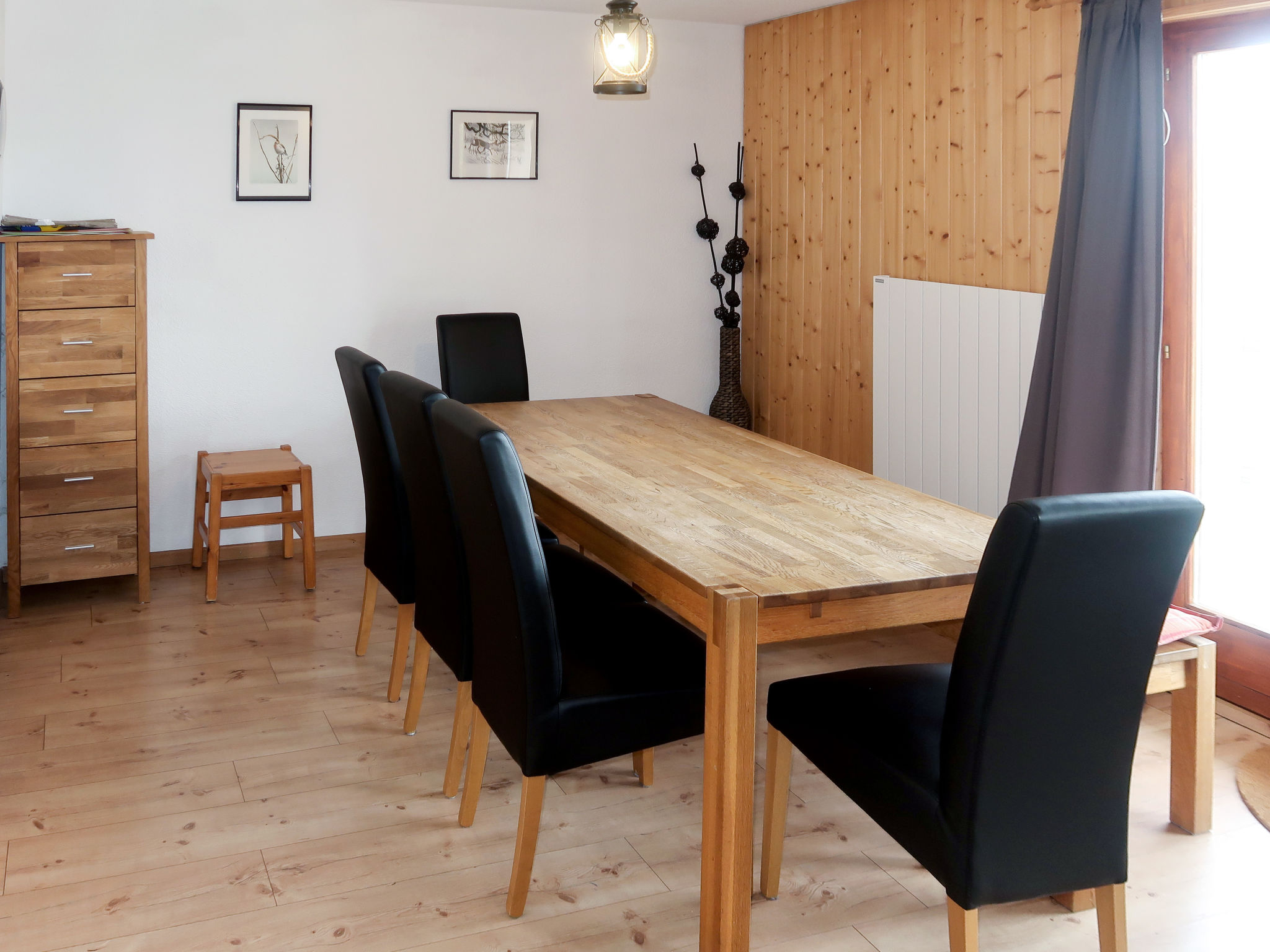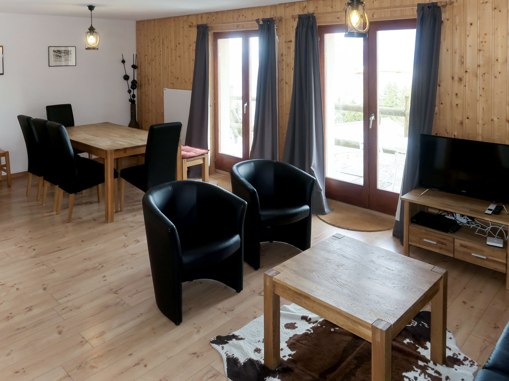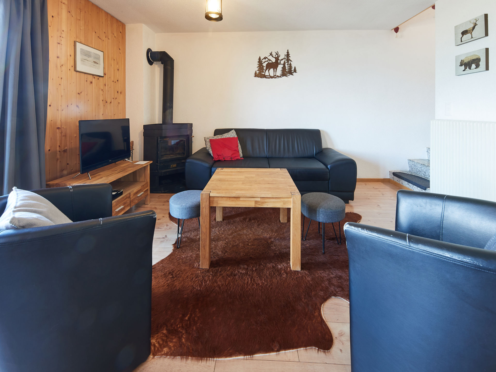 "Fuchsia", 5-Zimmer-Reihenhaus 100 m2 auf 2 Stockwerken. Komfortabel und geschmackvoll eingerichtet: Wohn-/Esszimmer mit Schwedenofen, Sat-TV, Internationale TV-Sender und DVD. Ausgang zur Terrasse. 1 kleines Zimmer mit 2 Betten. Offene Küche (Backofen, Geschirrspüler, 4 Glaskeramikplatten, Mikrowelle, elektrische Kaffeemaschine, Fondue Set (Käse)). Dusche/WC. Ölheizung. Obergeschoss: 1 Zimmer mit 2 Betten. Ausgang zum Balkon. 1 Zimmer mit 2 Betten. Ausgang zum Balkon. 1 Zimmer mit 1 x 2 Etagenbetten. Bad/WC. Ölheizung. Holzdielenboden. Balkon, Terrasse. Panoramasicht. Zur Verfügung: Internet (Wireless LAN). Bitte beachten: Nichtraucher-Unterkunft. Maximal 1 Haustier/Hund erlaubt. Das Chalet befindet sich auf der Trabanta Piste. Ein Schlitten wird für das Gespäck zur Verfügung gestellt.