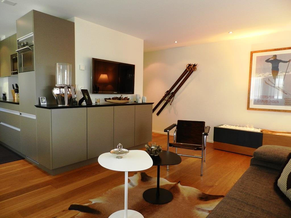 2 1/2 Zimmer Wohnung (ca. 58m) für höchste Ansprüche in einem Mehrfamilienhaus; Parkplatz in Einstellhalle; Skiraum; 3. Stock; Lift; schöner Südbalkon möbliert; Schlafzimmer mit Doppelbett (1.80), 2 Matratzen, TV; Dusche/Lavabo/WC; moderne offene Küche mit Induktionsherd, Backofen, Mikrowelle, Geschirrspühler, Kaffeemaschinen (Nespresso); Wohn-Esszimmer mit TV/Radio, Internet; die Betten sind bei Ihrer Anreise bezogen, Frottéwäsche, Küchenwäsche vorhanden; Nichtraucherwohnung - Haustiere nicht erlaubt!