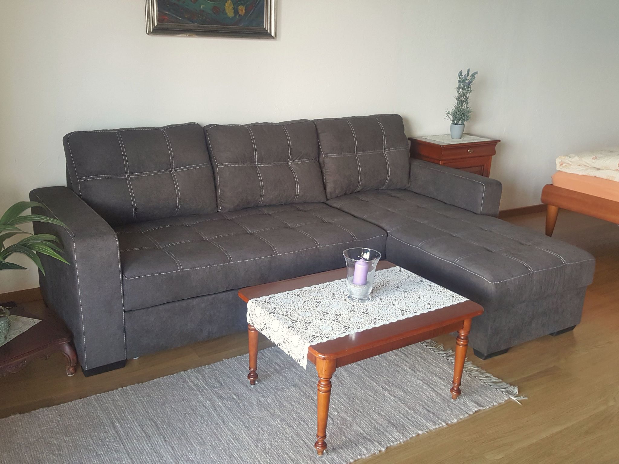 1-Zimmerwohnung mit kombiniertem Wohn- und Schlafbereich mit 2 Betten, ausziehbarem Schlaf-Sofa, TV mit Radio. Balkon mit Seeblick.