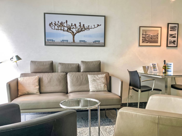 "Lakeview App 501", 1-Zimmer-Wohnung 43 m2 im 5. Stock. Geräumig und hell, gemütlich eingerichtet: offenes Wohn-/Esszimmer mit Panoramafenster mit Sat-TV (Flachbildschirm), Radio. Ausgang zur Terrasse. Schlafnische mit 2 Betten (90 cm, Länge 200 cm). Küche (Backofen, Geschirrspüler, 4 Glaskeramikplatten, Mikrowelle, elektrische Kaffeemaschine, Kapseln für die Kaffeemaschine (Nespresso) extra). Bad/WC. Terrasse, Südlage. Terrassenmöbel. Sehr schöne Panoramasicht auf den See, die Berge und die Landschaft. Zur Verfügung: Internet (Wireless LAN, gratis). Parkplatz Nr. 15. Bitte beachten: Nichtraucher-Unterkunft. NL-00011472