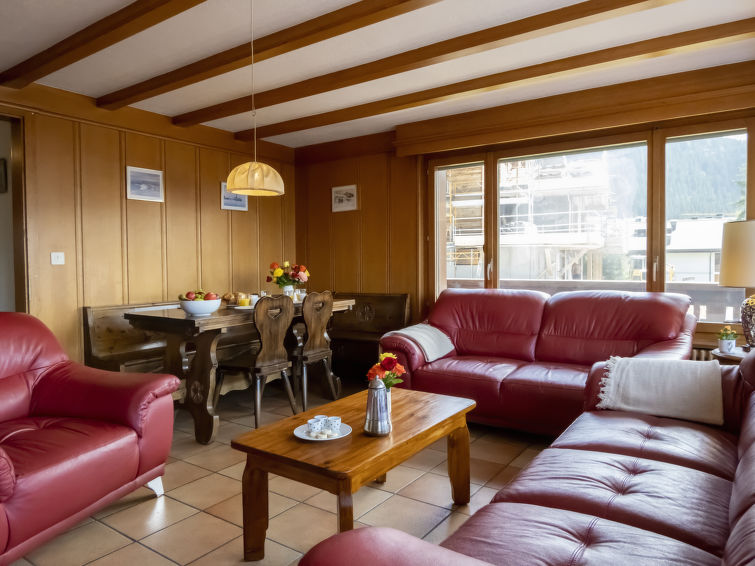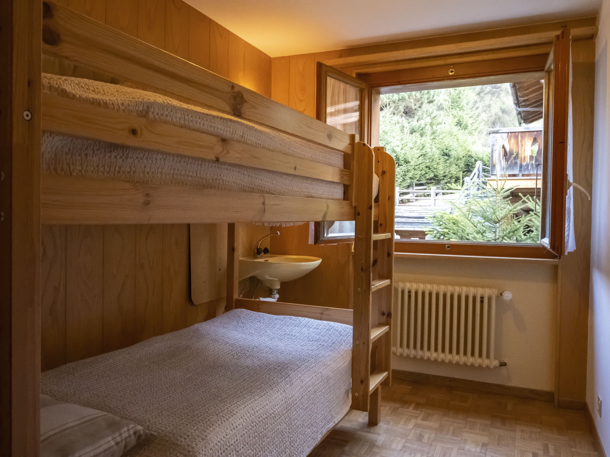 "Pierreval 18", 4-Zimmer-Wohnung 106 m2 im 1. Stock, Südlage. Zweckmässig und schön eingerichtet: Wohn-/Esszimmer, Richtung Süden mit offenem Kamin, Esstisch und Kabel-TV. Ausgang zum Balkon, Richtung Süden. 1 Zimmer, Richtung Nordosten mit 2 Betten. 1 Zimmer, Richtung Norden mit 1 x 2 Etagenbetten (Länge 200 cm), Waschbecken. 1 Zimmer, Richtung Norden mit 2 Betten. Küche (4 Kochplatten, Backofen, Geschirrspüler, Toaster, Wasserkocher, Mikrowelle). Bad, sep. WC. Grosser Balkon, Südlage. Balkonmöbel. Sicht auf die Berge, die Landschaft und die Ortschaft. Zur Verfügung: Haartrockner. Internet (Wireless LAN, gratis). Bitte beachten: Nichtraucher-Unterkunft, kein Parkplatz. Maximal 1 Haustier/Hund erlaubt.
