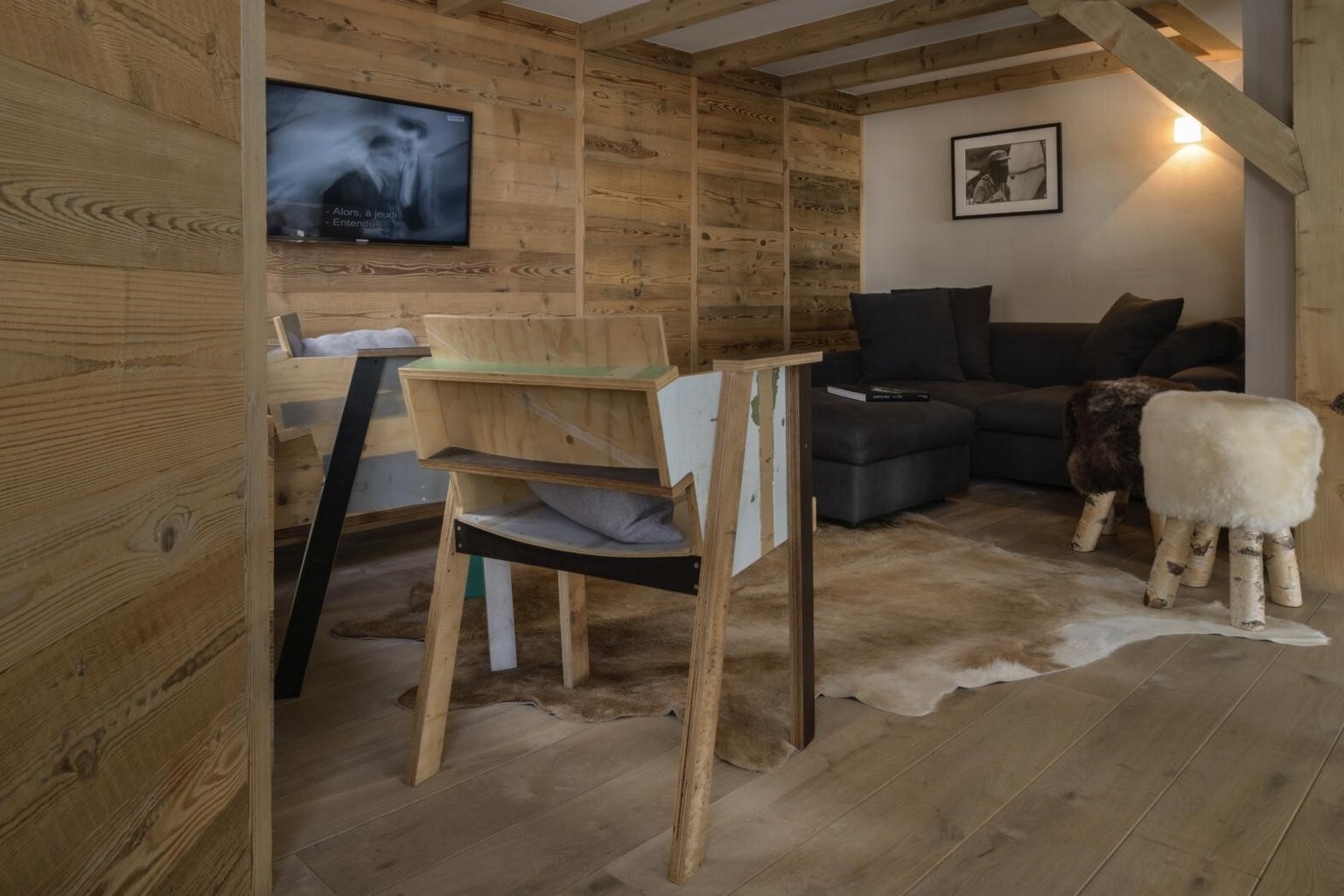 Hervorragende 4-Zimmer-Wohnung. Es besteht aus einem Wohnzimmer, einem Essbereich mit Kamin, einer voll ausgestatteten offenen Küche, einem Büro auf der Zwischenebene, zwei Doppelzimmern und einem Schlafzimmer mit Etagenbetten sowie zwei Duschräumen. Ein Balkon und eine Terrasse bieten Ihnen eine wunderschöne Aussicht mit südlicher Ausrichtung. WLAN und Kabelfernsehen. Rauchfrei und haustierfrei