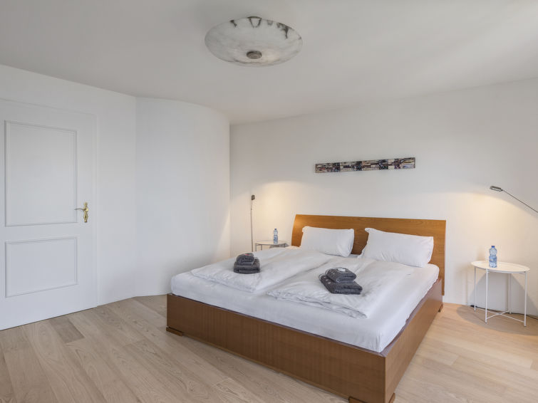 "Porta", 3-Zimmer-Reihenhaus 80 m2 auf 3 Stockwerken. Objekt geeignet für 4 Erwachsene. Geräumig und hell, schön und geschmackvoll eingerichtet: offenes Wohn-/Esszimmer mit Veranda, Schiebetür mit Digital-TV und Flachbildschirm. Grosse Küche (Backofen, Geschirrspüler, 4 Glaskeramikplatten, Toaster, Wasserkocher, elektrische Kaffeemaschine, Kapseln für die Kaffeemaschine (Nespresso) extra). Unteres Geschoss: (Wendeltreppe) 1 Doppelzimmer mit 1 Doppelbett (2 x 90 cm, Länge 200 cm). (Wendeltreppe) 1 Zimmer mit 2 Betten (90 cm, Länge 200 cm). Bad/Dusche, sep. WC, Doppelwaschbecken. Heizung. Parkettboden, Natursteinboden. Balkon 8 m2, Südlage und Westlage, grosser Gartensitzplatz 25 m2, Südlage und Westlage. Balkonmöbel, Elektrogrill. Sehr schöne Panoramasicht auf den See und die Berge. Zur Verfügung: Waschmaschine. Internet (Wireless LAN). Parkplatz Nr. AG-211506, Breite 212 cm. Bitte beachten: Nichtraucher-Haus. Eigener Eingang, kein Fahrstuhl. NL-00006428