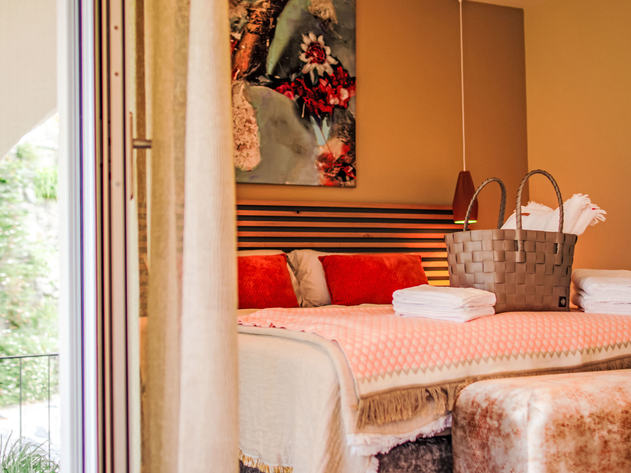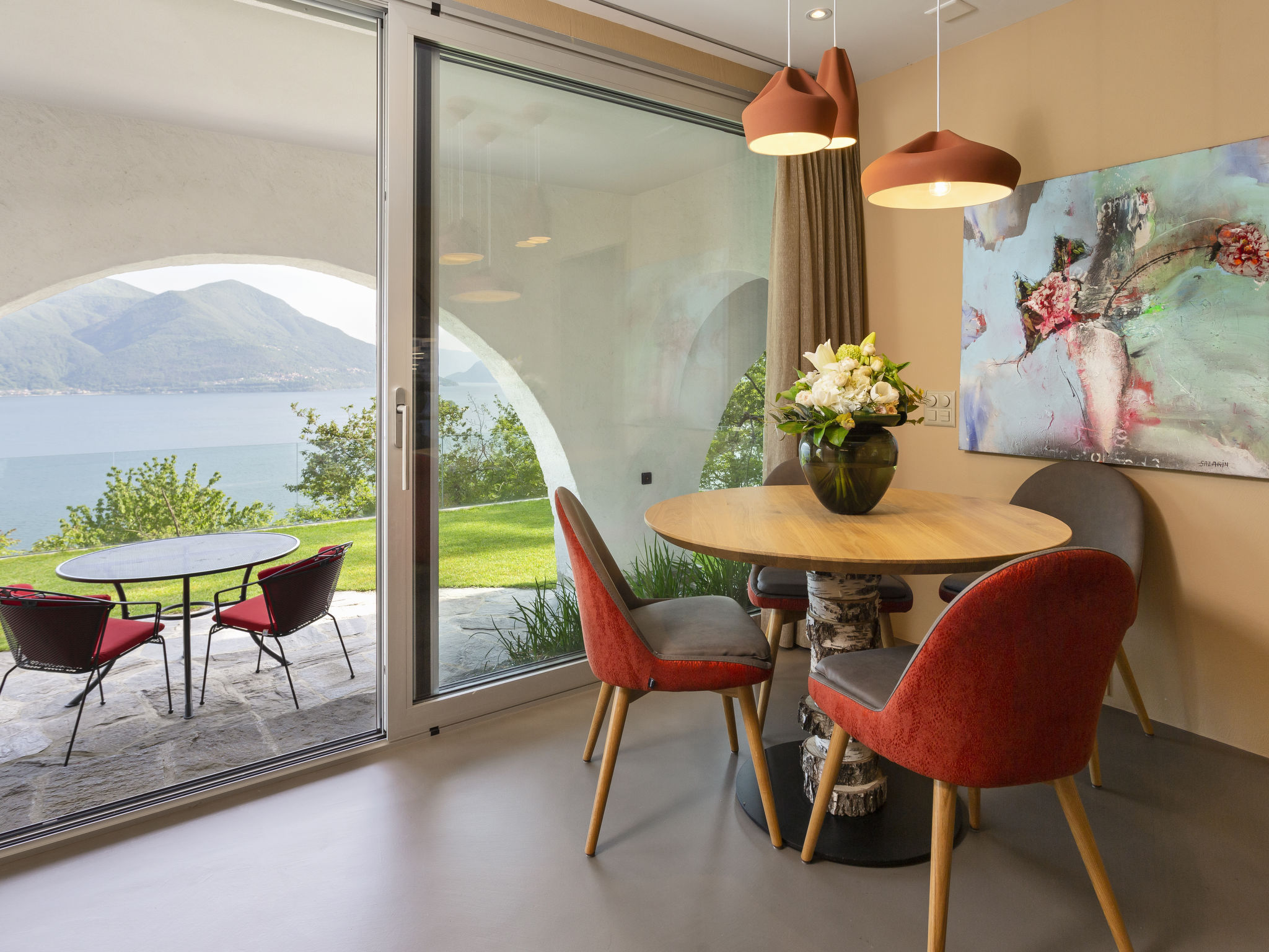 "Garden Suite", 2-Zimmer-Wohnung 40 m2, im Erdgeschoss, Südostlage. Geräumig und hell, vollständig renoviert im Jahre 2022, luxuriös und geschmackvoll eingerichtet: kleines Wohn-/Esszimmer mit Panoramafenster mit Esstisch. Ausgang zur Terrasse, zum Gartensitzplatz. 1 Doppelzimmer mit Panoramafenster mit 1 Doppelbett (2 x 80 cm, Länge 200 cm). Ausgang zur Terrasse, zum Gartensitzplatz. Kleine, offene Küche (Backofen, Geschirrspüler, 4 Glaskeramikplatten, Toaster, Wasserkocher, elektrische Kaffeemaschine, Kapseln für die Kaffeemaschine (Nespresso) gratis). Dusche/WC. Fussbodenheizung. Grosse Terrasse, Südwestlage, grosser Gartensitzplatz teilweise überdacht. Terrassenmöbel, Gartengrill, Liegestühle (2). Herrliche Panoramasicht auf den See, die Berge und die Landschaft. Zur Verfügung: Haartrockner. Internet (DSL/LAN, gratis). Bitte beachten: nicht geeignet für Kinder unter 14 Jahren. Nichtraucher-Unterkunft. Eigener Eingang. Die "cosy" Gardensuite lädt ein zum Verweilen und Seele baumeln lassen. Gönnen Sie sich eine wohltuende Auszeit hoch über dem Lago Maggiore! NL-00012626