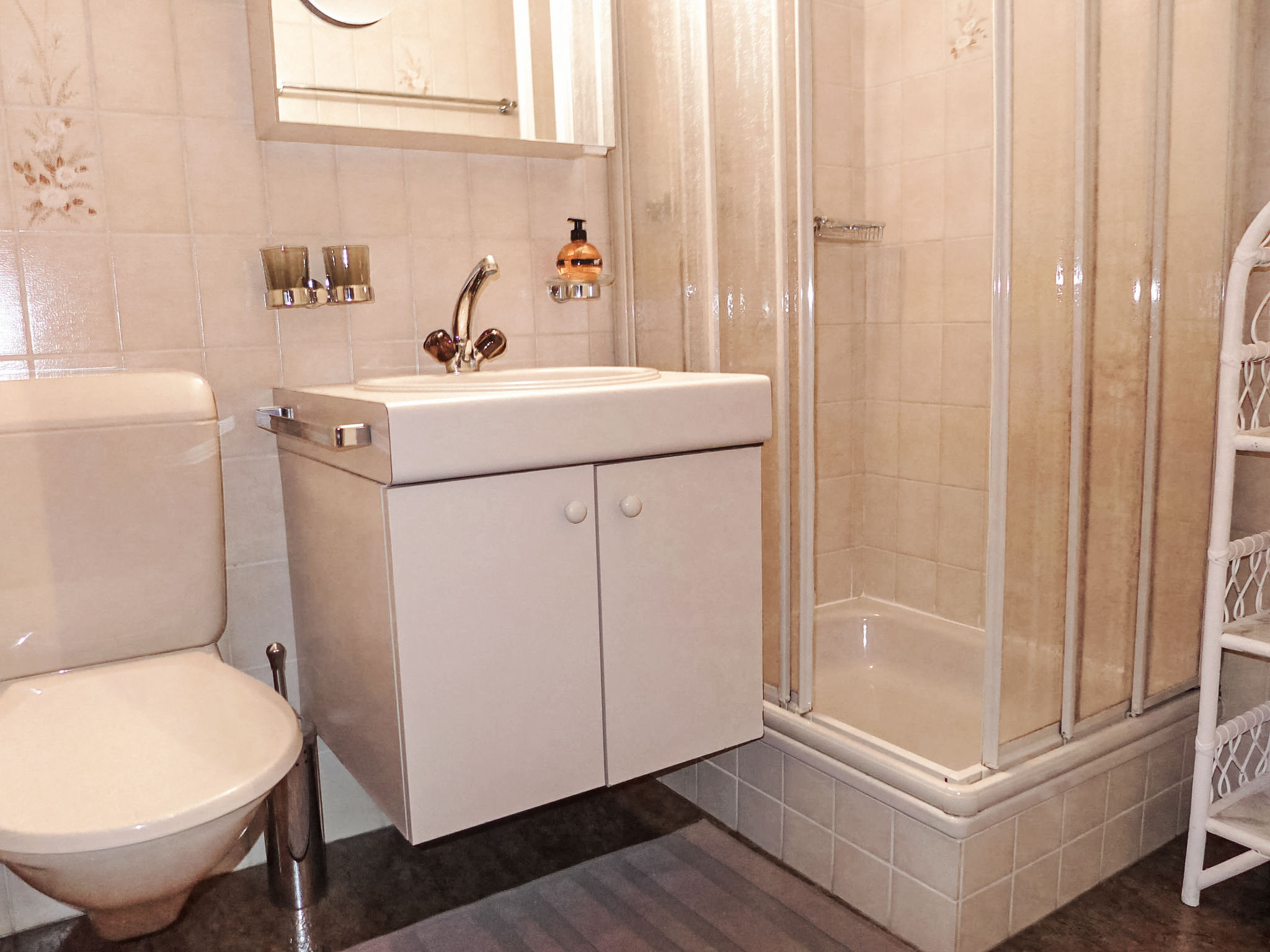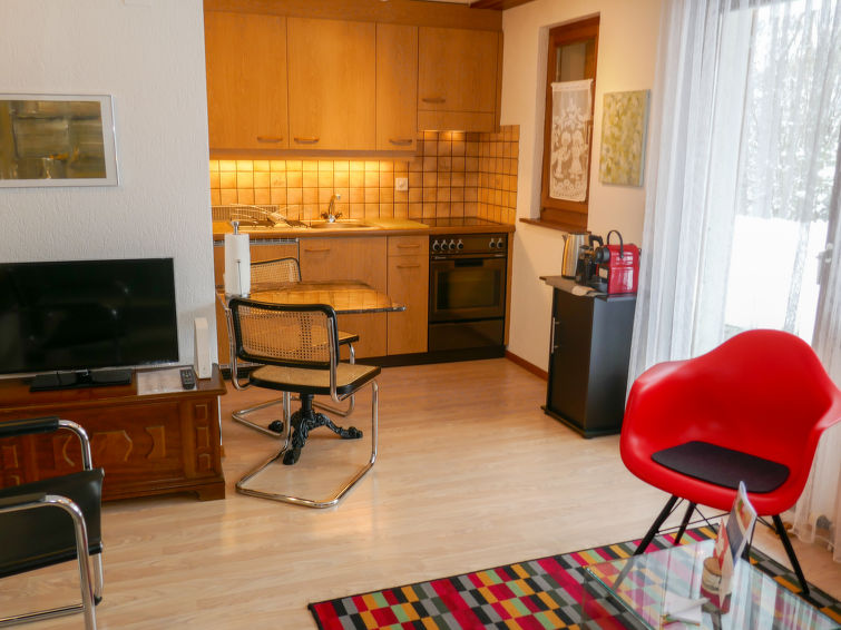 1-Zimmer-Wohnung 25 m2, im Erdgeschoss, Südlage. Hell, gemütlich eingerichtet: Wohn-/Schlafzimmer mit 2 Betten (90 cm, Länge 200 cm), Kabel-TV (Flachbildschirm). Ausgang zum Gartensitzplatz, Richtung Süden. Offene Küche (Backofen, 4 Glaskeramikplatten, elektrische Kaffeemaschine, Kapseln für die Kaffeemaschine (Nespresso) extra, Racletteofen, Fondue Set (Käse)). Ausgang zum Gartensitzplatz. Dusche/WC. Parkettboden. Grosser Gartensitzplatz, Südlage. Terrassenmöbel, Liegestühle (2). Herrliche Sicht auf die Berge und Eigernordwand. Zur Verfügung: Haartrockner. Internet (Wireless LAN, gratis). Parkplatz beim Haus. Bitte beachten: Nichtraucher-Unterkunft. Feuerlöscher.