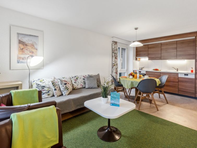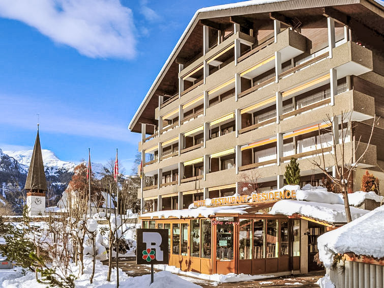 Appartementhaus "Residence". Im Ort, 100 m vom Zentrum von Wengen, zentrale, sonnige Lage. Im Hause: Restaurant, Fahrstuhl, Zentralheizung. Einkaufsservice vor Anreise möglich. Einkaufsgeschäft 100 m, Lebensmittelgeschäft 50 m, Supermarkt 100 m, Bar 50 m, Bäckerei 100 m, Bushaltestelle "Lauterbrunnen (by train)" 3.2 km, Bahnstation "Wengen" 150 m, Freibad 500 m. Luftseilbahn, Skisportanlagen 100 m, Kinderspielplatz 30 m. Bekannte Seen in der Umgebung sind gut erreichbar: Thunersee 13 km, Brienzersee 13 km. Bitte beachten: autofreie Ferienanlage. Die Anreise erfolgt mit der Bergbahn. Anreise ist nur mit dem Zug ab Lauterbrunnen möglich – 14 Min. Fahrzeit.
