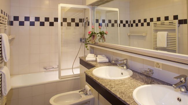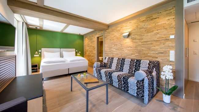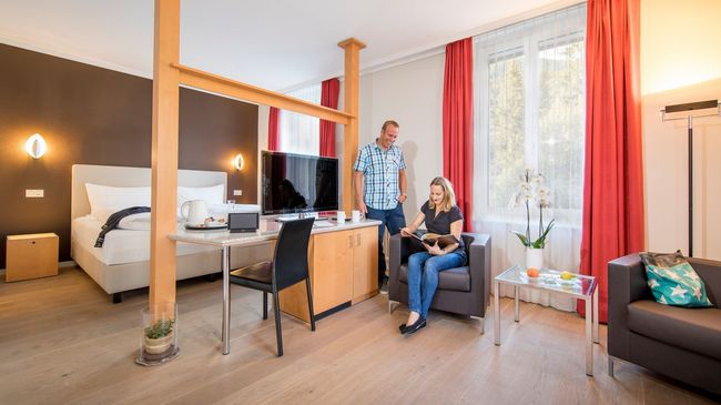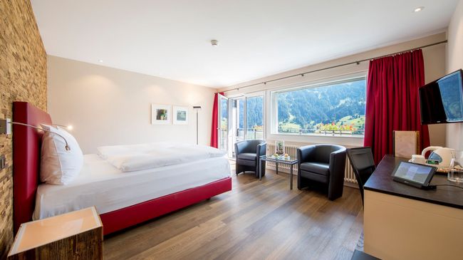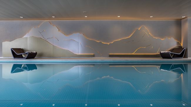 Nach einem aktiven Tag in den Bergen entspannen Sie im Wellness mit Sole-Whirlpool im Garten, Schwimmbad, Sauna und Dampfbad, bei einer Partie Billard, bei einem feinen Drink in der Bar oder auf der Panoramaterrasse.
