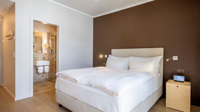 Die 56 klimatisierten Nichtraucherzimmer verfügen über Balkon, Bad oder Dusche und verschiedene Kissen zur Wahl für einen erholsamen Schlaf.