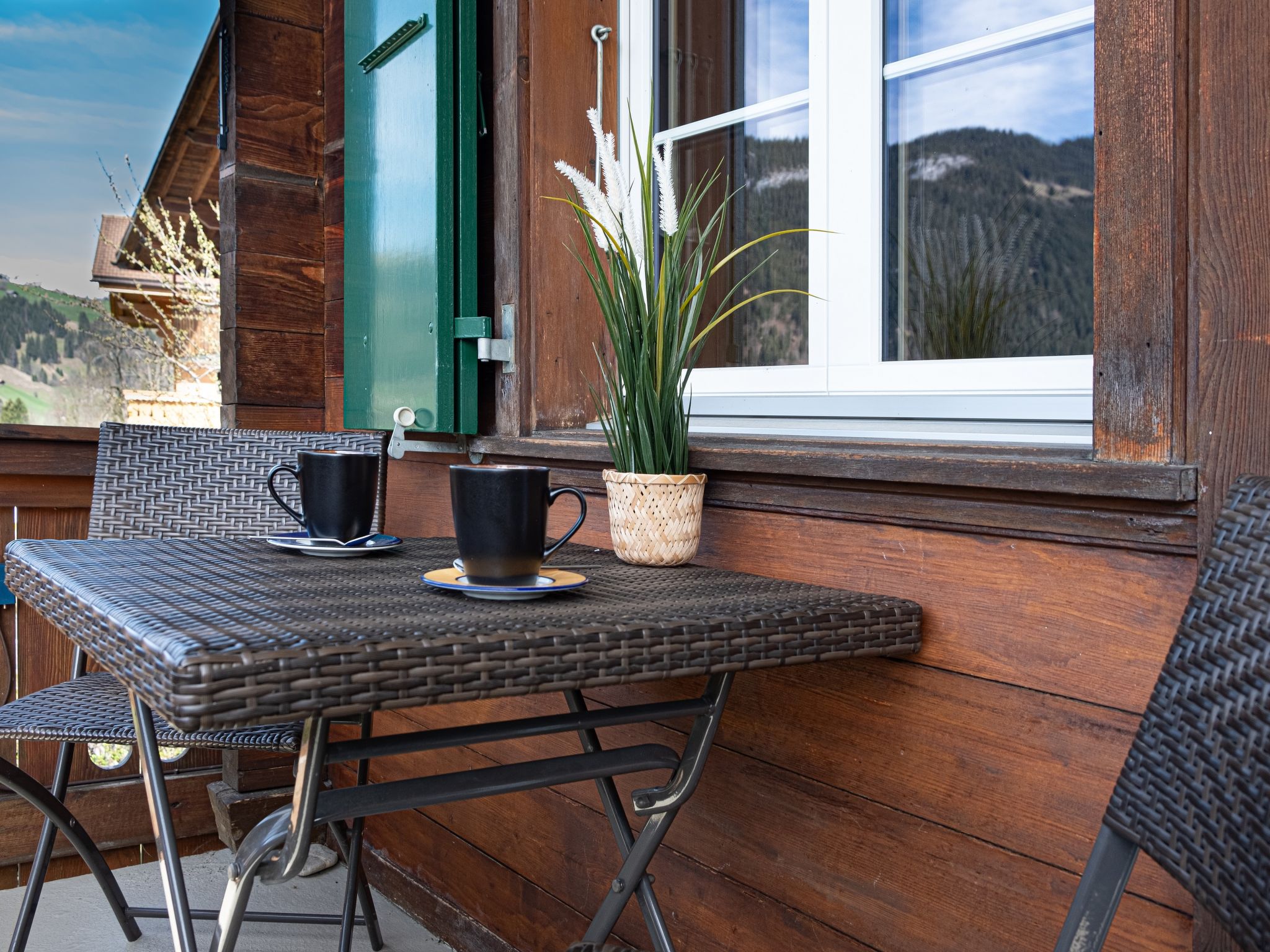 "Chalet Anita", 3-Zimmer-Wohnung im 1. Stock. Objekt geeignet für 2 Erwachsene + 2 Kinder. Hell, sehr modern und gemütlich eingerichtet: offenes Wohn-/Esszimmer. Ausgang zum Balkon. 1 Zimmer mit 1 Doppelbett (180 cm, Länge 200 cm). Ausgang zum Balkon. 1 Zimmer mit 2 Betten (90 cm, Länge 200 cm). Ausgang zur Terrasse. Offene Küche (Backofen, Geschirrspüler, 4 Glaskeramikplatten, Toaster, Tiefkühler, elektrische Kaffeemaschine, Kapseln für die Kaffeemaschine (Nespresso) extra, Racletteofen, Fondue Set (Käse)). Bad/WC. E-Heizung. Balkon, Westlage, Terrasse, Ostlage und Nordlage. Balkonmöbel. Herrliche Panoramasicht auf die Berge, das Tal und die Landschaft. Zur Verfügung: Haartrockner. Internet (WLAN, gratis). Garage beim Haus, Höhe 195 cm. Bitte beachten: kein Fahrstuhl.