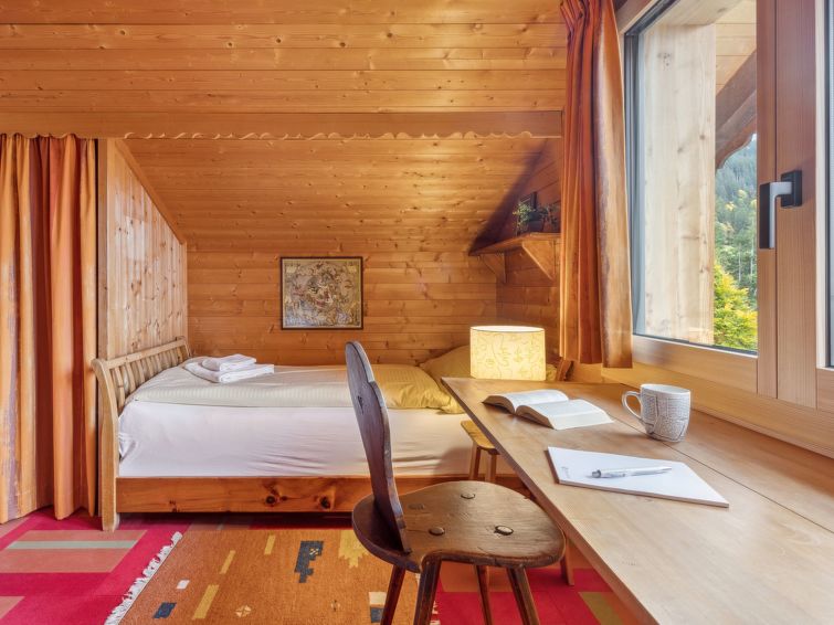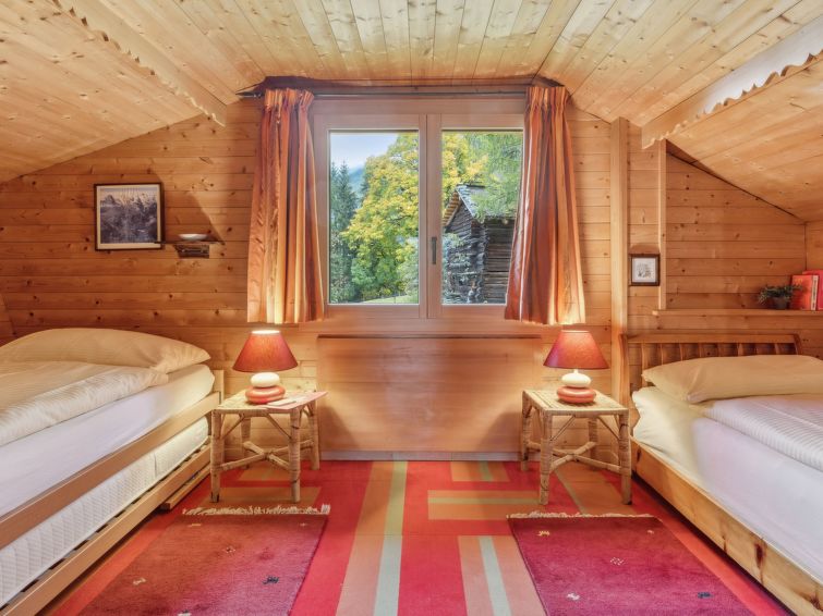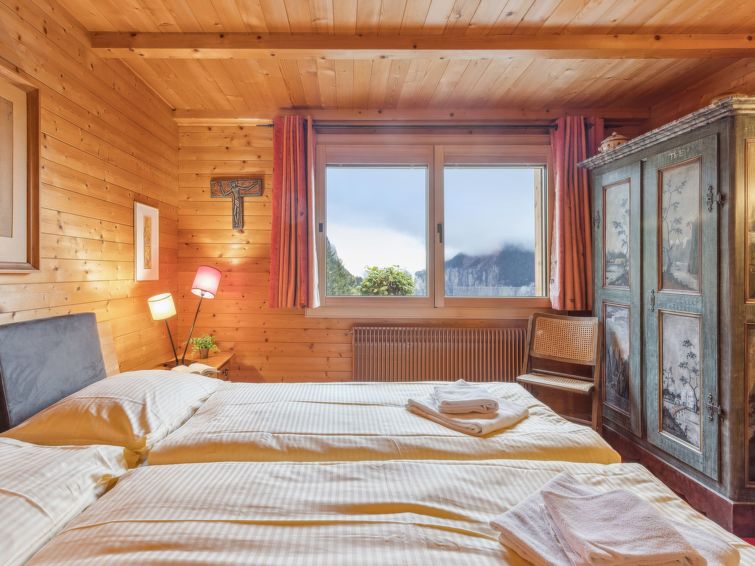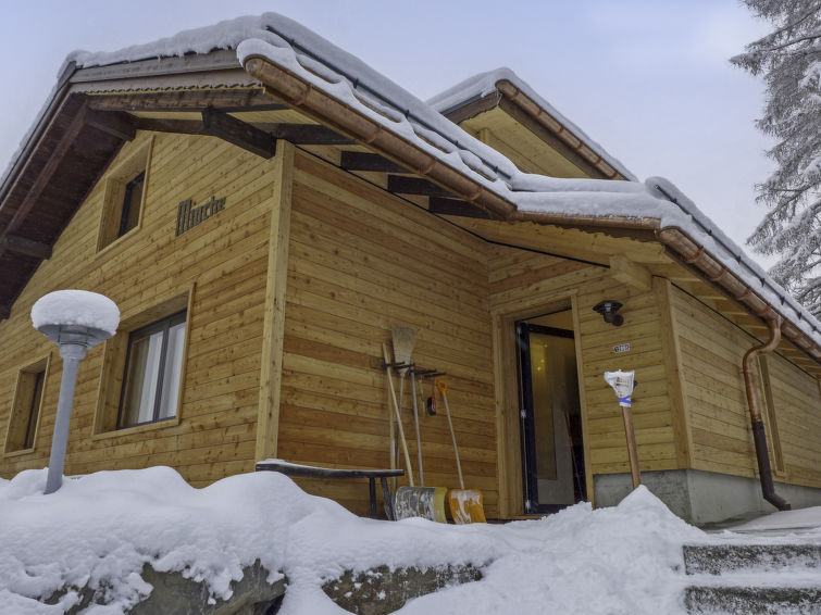 "Mioche", 4-Zimmer-Chalet 120 m2 auf 2 Stockwerken. Geräumig, rustikal und gemütlich eingerichtet: Wohn-/Esszimmer mit offenem Kamin, Sat-TV, Radio, CD und DVD. 1 Zimmer mit 1 Doppelbett (2 x 90 cm, Länge 200 cm). Küche (Backofen, Geschirrspüler, 4 Glaskeramikplatten, Toaster, Wasserkocher, Mikrowelle, elektrische Kaffeemaschine, Kapseln für die Kaffeemaschine (Dolce Gusto) extra, Racletteofen, Fondue Set (Käse)). Dusche/Bidet/WC, sep. WC. Obergeschoss: abgeschrägt 2 Zimmer, jedes Zimmer mit 2 Betten (90 cm, Länge 200 cm). Dusche/WC. Grosse Terrasse. Terrassenmöbel. Herrliche Panoramasicht auf die Berge. Zur Verfügung: Bügeleisen, Haartrockner, Holz (extra). Internet (Wireless LAN, gratis). Bitte beachten: geeignet für Familien. Nichtraucher-Unterkunft.