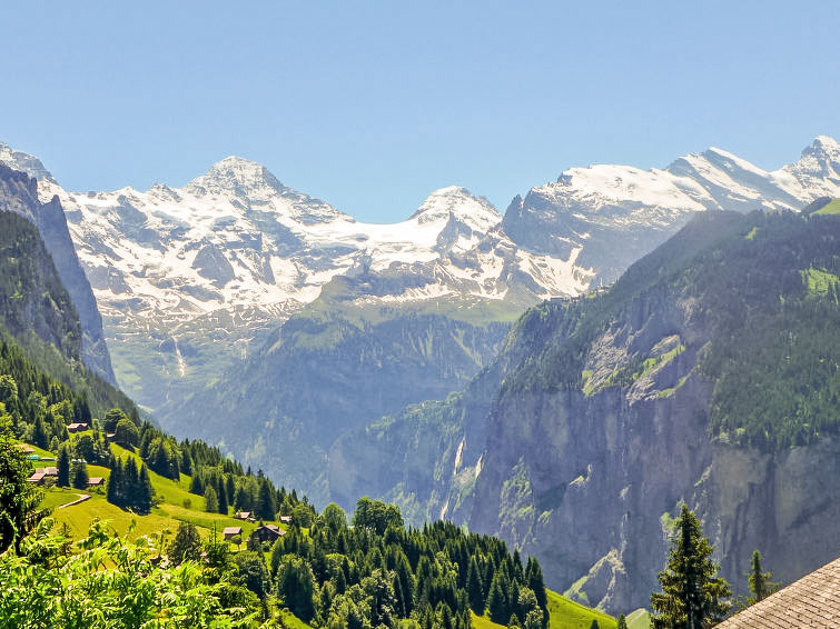 Chalet "Mioche". Im Ortsteil Stutzweidli, 1.5 km vom Zentrum von Wengen, ruhige, sonnige Lage. Im Hause: Zentralheizung. Einkaufsservice vor Anreise möglich. Zufahrt bis 30 m zum Haus. Einkaufsgeschäft 1.5 km, Supermarkt 1.5 km, Restaurant 1.3 km, Bar 1.5 km, Bäckerei 1.5 km, Zentrum zu Fuss in 20 Minuten erreichbar, Bushaltestelle "Lauterbrunnen (by train)" 4.5 km, Bahnstation "Wengen" 1.5 km. Luftseilbahn 1.5 km, Skisportanlagen 1.5 km, Skipisten 50 m. Bekannte Seen in der Umgebung sind gut erreichbar: Thunersee 13 km, Brienzersee 13 km. Bitte beachten: autofreie Ferienanlage. Bei guter Schneelage Zufahrt mit den Skiern bis zum Haus. Die Anreise erfolgt mit der Bergbahn. Anreise ist nur mit dem Zug ab Lauterbrunnen möglich – 14 Min. Fahrzeit.