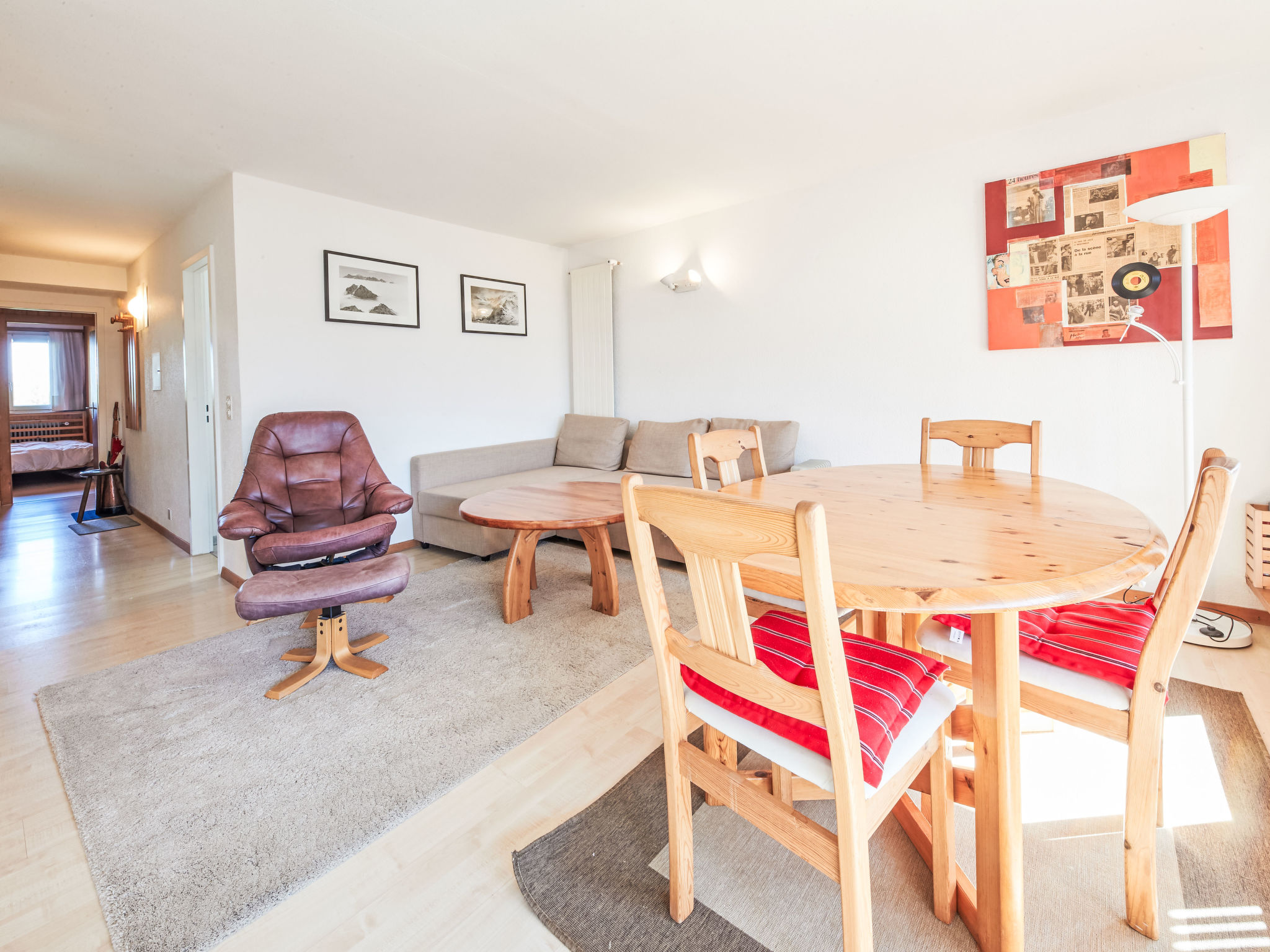 "Combire 210", 3-Zimmer-Wohnung im 2. Stock. Komfortabel und gemütlich eingerichtet: Wohn-/Esszimmer mit TV. Ausgang zum Balkon, Richtung Osten. 1 Zimmer mit 1 Doppelbett. 1 Zimmer mit 2 Betten. Küche (3 Kochplatten, Backofen, Mikrowelle). Bad/WC, sep. WC. Balkon, Ostlage. Balkonmöbel. Zur Verfügung: Internet (Wireless LAN). Bitte beachten: Nichtraucher-Unterkunft.