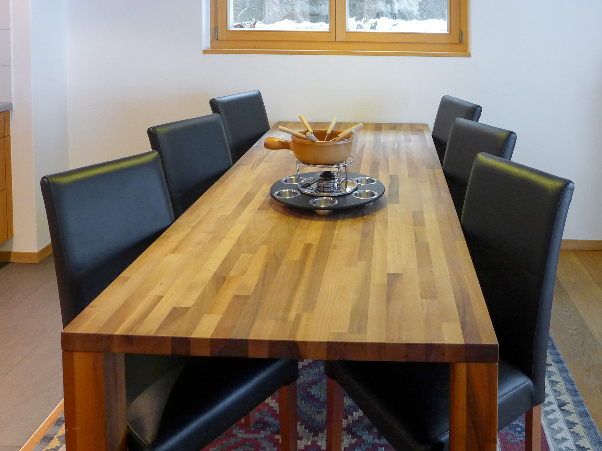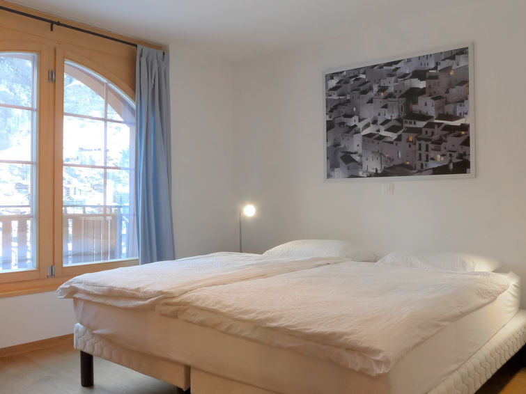 3-Zimmer-Wohnung. Hell, schön und modern eingerichtet: Wohnzimmer mit 2 Diwanbetten, Schwedenofen, TV und DVD. Ausgang zum Balkon. 1 Doppelzimmer mit 1 Doppelbett (1 x 160 cm, Länge 200 cm), Bad/WC. 1 Zimmer mit 2 Betten (90 cm, Länge 200 cm). Grosse, offene Küche (Backofen, Geschirrspüler, 4 Glaskeramikplatten, Toaster, Wasserkocher, Mikrowelle, Tiefkühler, elektrische Kaffeemaschine, Racletteofen, Fondue Set (Käse)). Dusche/WC. Balkon. Balkonmöbel. Schöne Sicht auf das Matterhorn. Zur Verfügung: Haartrockner. Internet (Wireless LAN, gratis). Bitte beachten: Nichtraucher-Unterkunft.