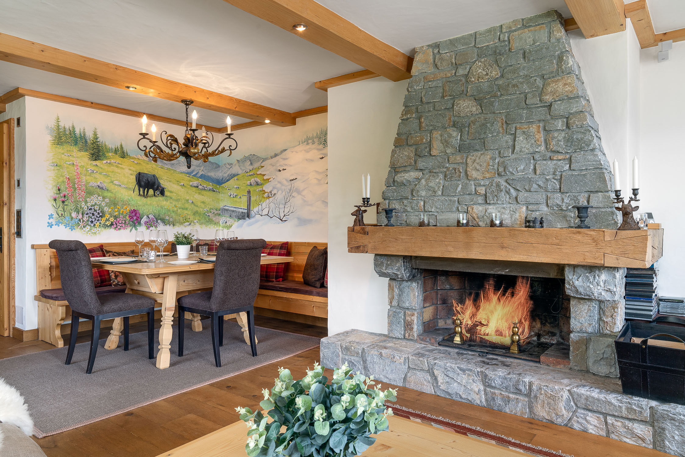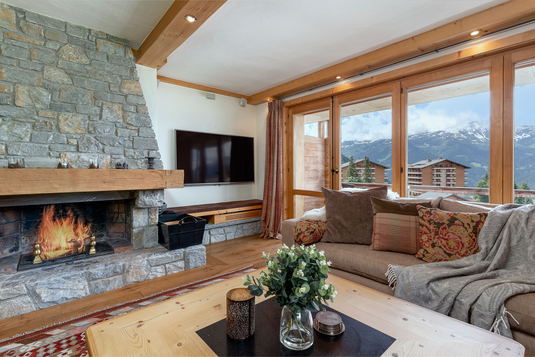 Wohnung mit zwei Schlafzimmern, kürzlich mit tollem Stil renoviert. Das geräumige und helle Wohnzimmer mit Südblick ist in eine einladende und warme Atmosphäre getaucht. Die großen, bodentiefen Fenster verbinden den Wohnbereich mit dem großen Außenbalkon. Das geschmackvoll eingerichtete Hauptschlafzimmer und sein Badezimmer grenzen an ein einladendes Etagenzimmer mit direktem Zugang zum Balkon und Gartenblick. Privater Skiraum und Zugang zum Liftzugang zum überdachten Parkplatz.Die Wohnung ist wie folgt aufgeteilt: 1 Schlafzimmer mit eigenem Bad mit Doppelbett und Duschbad, 1 Schlafzimmer mit 2 Etagenbetten, 1 separates WC.Die offene Küche öffnet sich zum Wohnzimmer und zum Südwestbalkon, ideal für einen späten Nachmittag oder frühen Abend. Die Lage ist zentral und ruhig, mit herrlichem Blick auf die Combins. Ideal für kleine Familien oder Gruppen von Freunden. Feuer ist nicht erlaubt.