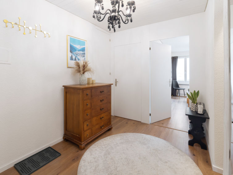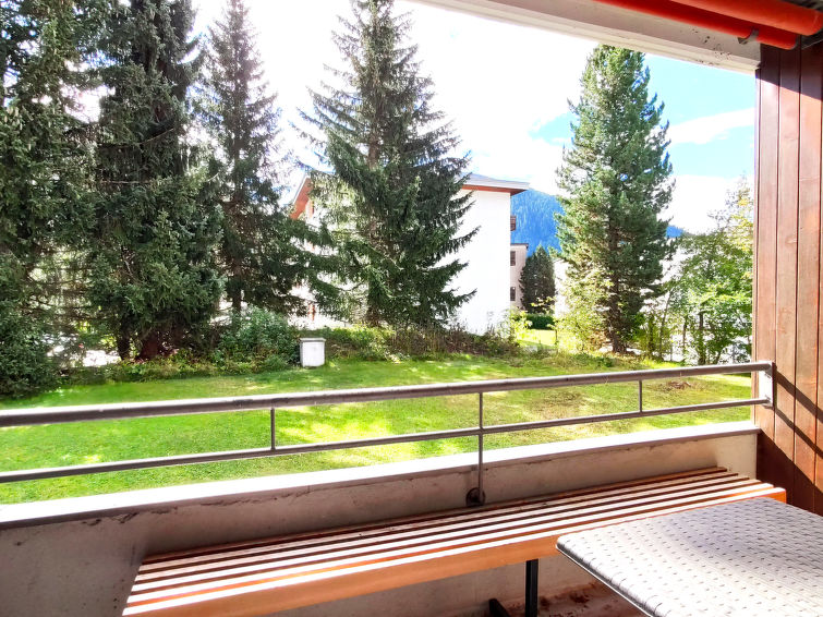 Davos Dorf: Schönes, komfortables Mehrfamilienhaus "Verbena", 1'560 m.ü.M., Baujahr 1971. Im Ortsteil Davos Dorf, 700 m vom Zentrum von Davos Dorf, ruhige Lage in einem Wohnquartier, verkehrsberuhigte Zone, 600 m vom See, Richtung Südosten. Zur Mitbenutzung: Garten, Wiese. Im Hause: Skiraum, Zentralheizung, Waschmaschine, Wäschetrockner. Wäschewechsel (zusätzlich extra). Handtuchwechsel (zusätzlich extra). Wohnungsreinigung möglich (extra). Zufahrt bis zum Haus. Einkaufsgeschäft 600 m, Supermarkt, Restaurant, Bäckerei 800 m, Café 800 m, Fahrradverleih 600 m, Bushaltestelle 200 m, Bahnstation "Davos Dorf", Hallenbad 1 km, Badebucht 550 m, Strandbad 600 m, See Davoser See 500 m. Golfplatz (18 Loch) 1.7 km, Surfschule, Segelschule, Tennis 5 km, Tennishalle 5 km, Minigolf 1.5 km, Reitstall 6 km, Sportzentrum 2 km, Wanderwege ab Haus, Radweg 100 m, Luftseilbahn 3 km, Bergeisenbahn, Skilift, Skipisten 500 m, Skiverleih 500 m, Skibushaltestelle 100 m, Skischule 600 m, Kinderskischule 500 m, Schlittelbahn 600 m, Langlaufloipe 200 m, Eisfeld 600 m, Kinderspielplatz 300 m. Nahe gelegene Sehenswürdigkeiten: Heimatmuseum 200 m. Bekannte Skigebiete sind gut erreichbar: Parsenn 1 km, Jakobshorn 2 km, Rinerhorn 7 km. Bekannte Seen in der Umgebung sind gut erreichbar: Davosersee 500 m. Bitte beachten: geeignet für Familien. Be- und Entladen am Ferienhaus möglich.
