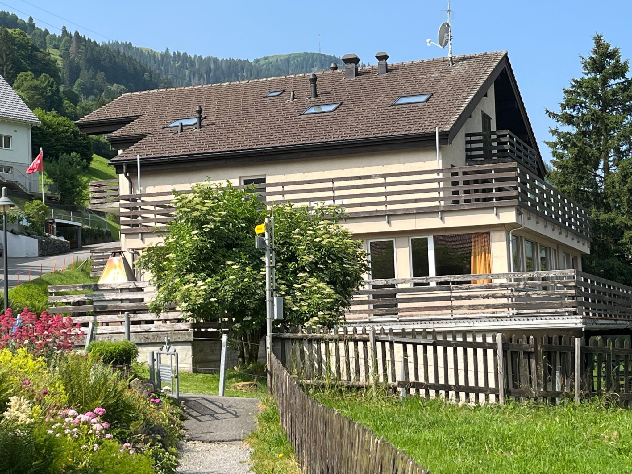 Der Aussenbereich lädt in den warmen Monaten zum Verweilen ein; ein gemeinschaftlicher Aussengrill steht Ihnen im Sommer zur Verfügung. Erleben Sie gemütliche Abende und genießen Sie die Stille und die beeindruckende Aussicht, die dieses einzigartige Angebot abrundet.