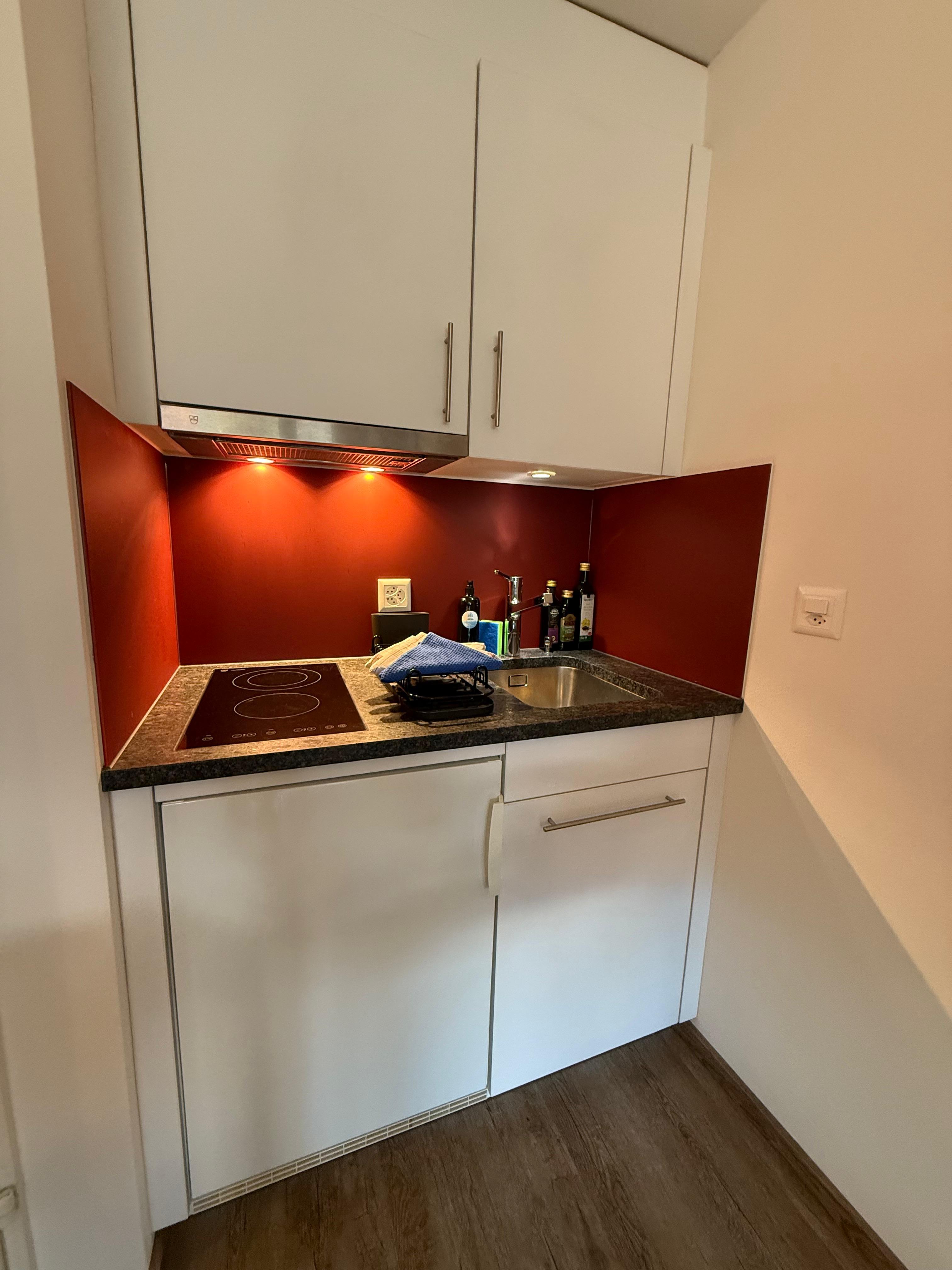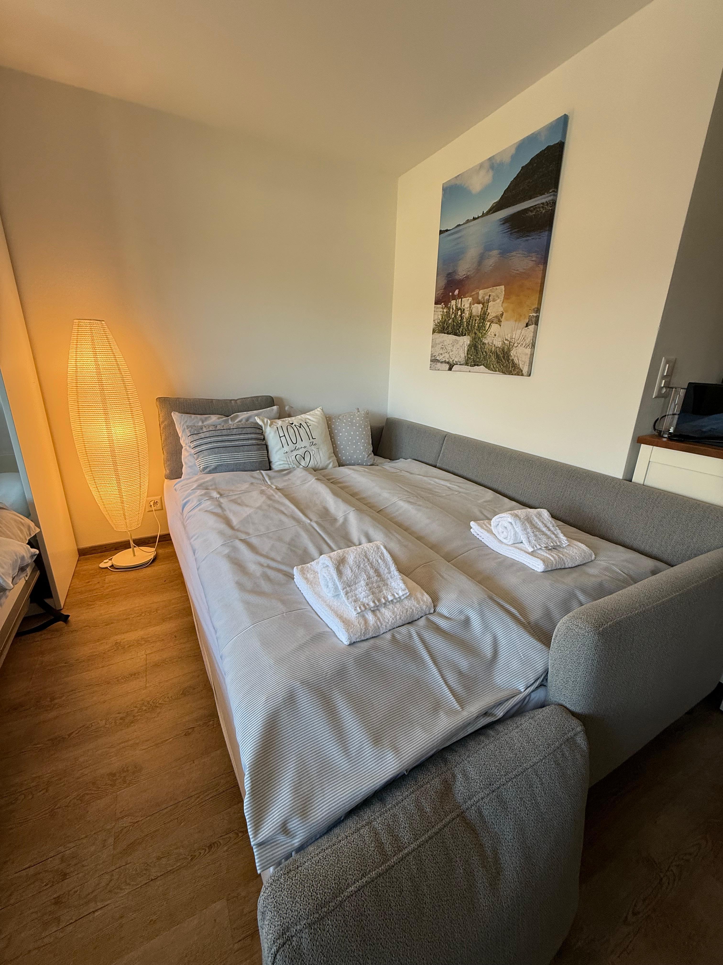 Studio mit ausklappbarem Doppelbett (Schrankbett 160 cm) und einer Schlafcouch (140cm) für maximal 4 Personen