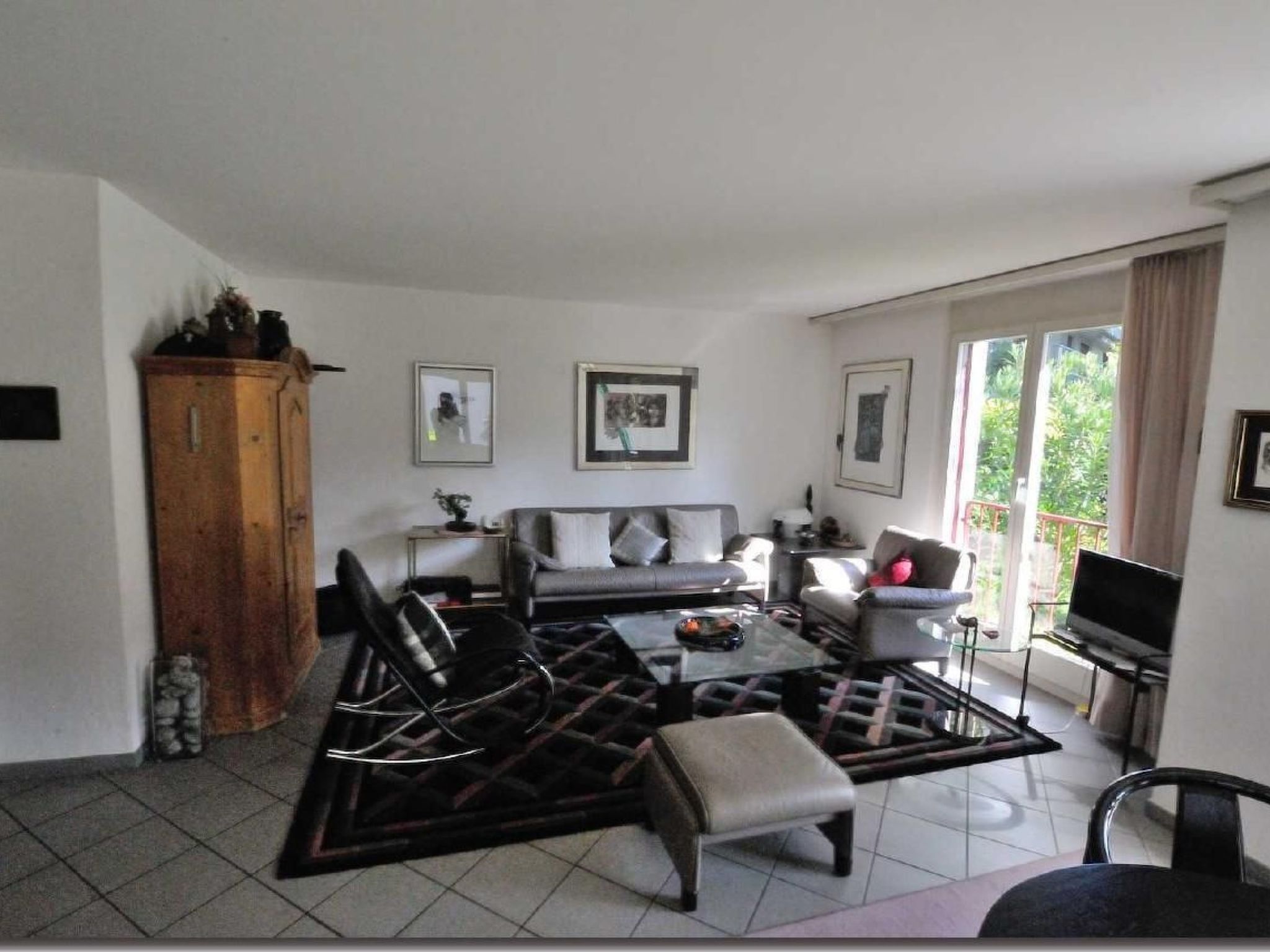 Die Wohnung im Parterre besticht durch ihre Süd-West-Ausrichtung, die für eine optimale Belichtung sorgt. Die Innenräume verteilen sich harmonisch und bieten einen gemütlichen Wohnraum mit direktem Zugang zur geschützten Terrasse. Zudem stehen Ihnen zwei komfortable Doppelschlafzimmer, eine gut ausgestattete Küche sowie ein Badezimmer mit WC, Badewanne und Dusche zur Verfügung. Eine Tiefgarage sorgt für bequemes Parken. Im Untergeschoss befindet sich zudem ein Privatraum mit Waschturm sowie eine zusätzliche Dusche und WC, was keinen Komfort vermissen lässt.