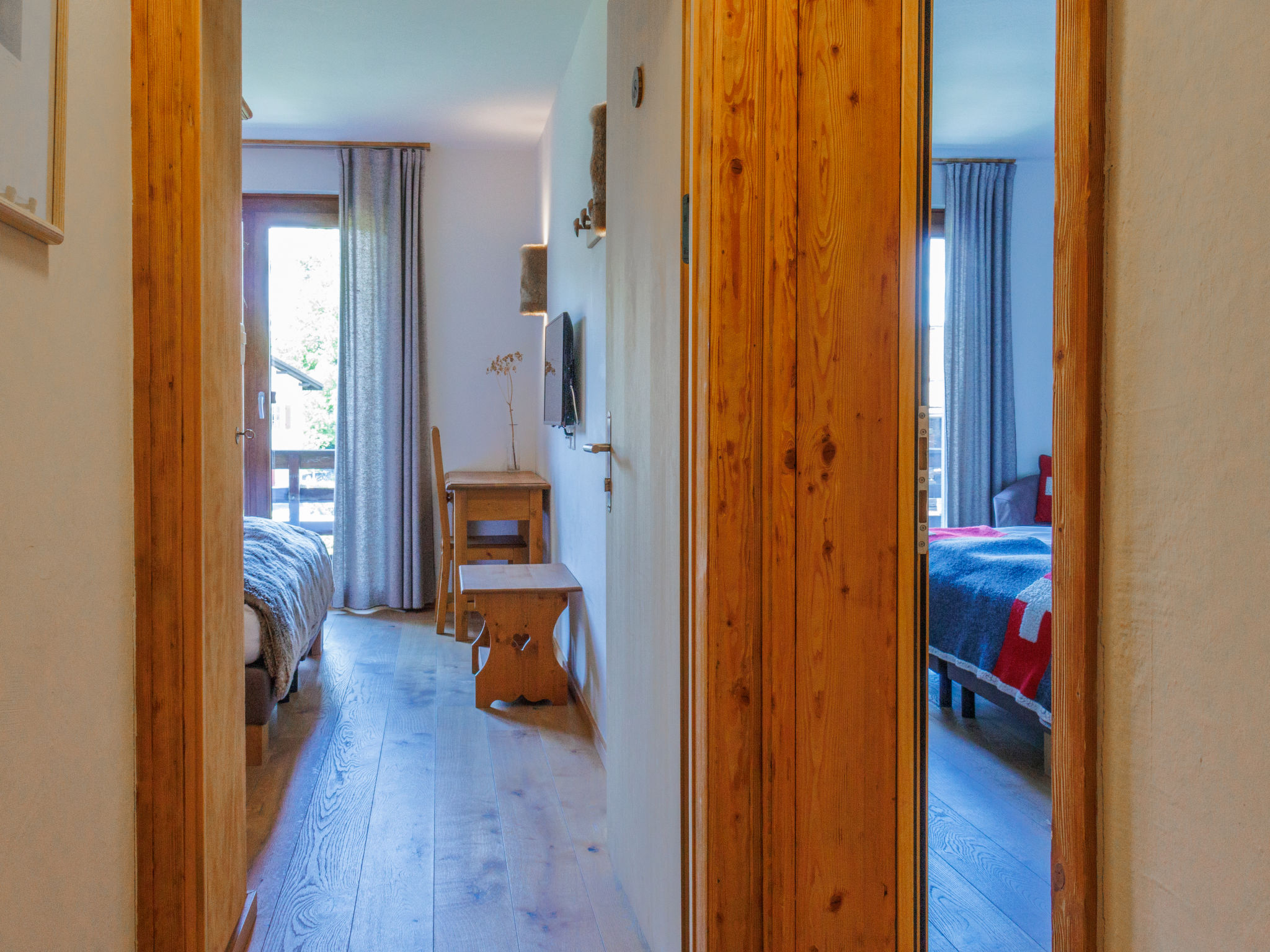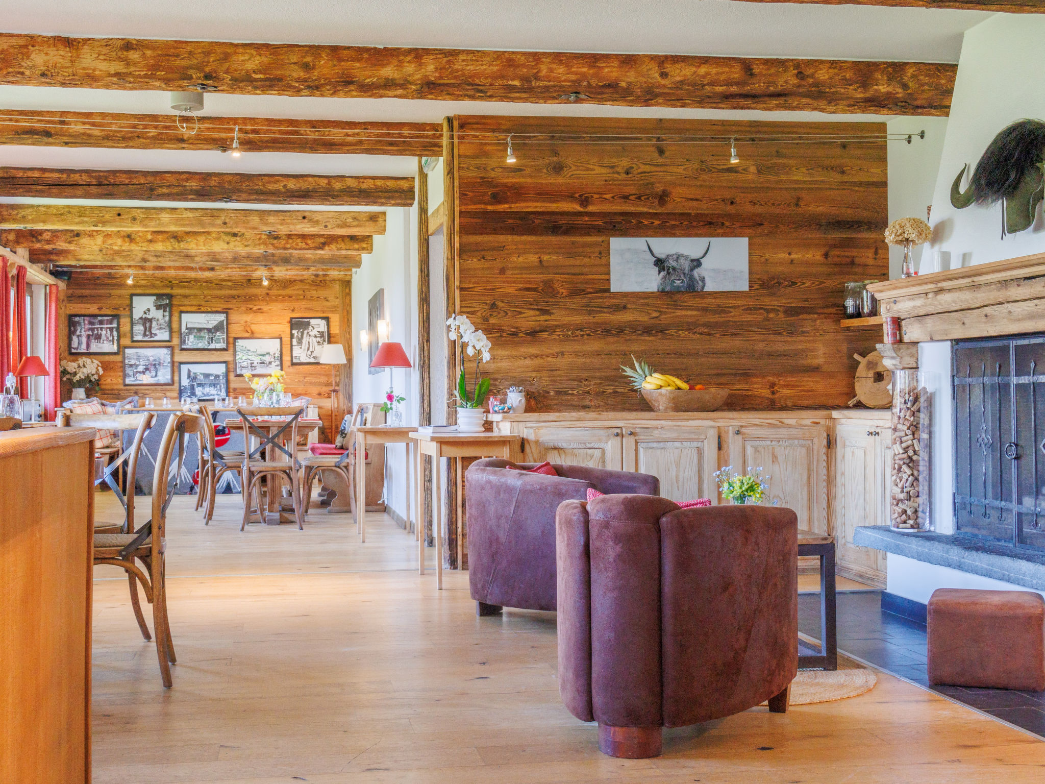 "Victoria", 12-Zimmer-Chalet 850 m2 auf 3 Stockwerken. Komfortabel und stilvoll eingerichtet: Wohn-/Esszimmer mit offenem Kamin, Essecke und Bar. Ausgang zur Terrasse, zur Veranda. Grosse Küche (Backofen, Geschirrspüler, Toaster, Wasserkocher, Mikrowelle, Tiefkühler, elektrische Kaffeemaschine, Fondue Set (Chinoise, Käse)). Sep. WC. Obergeschoss: 5 Zimmer, jedes Zimmer mit 2 Betten (90 cm, Länge 200 cm), Dusche/WC. Ausgang zum Balkon. 1 Zimmer mit 2 Betten (90 cm, Länge 200 cm), Bad/WC. 1 Zimmer mit 1 Bett (90 cm, Länge 20 cm), Dusche/WC. Ausgang zum Balkon. 2. Obergeschoss: 3 Zimmer, jedes Zimmer mit 2 Betten (90 cm, Länge 200 cm), Dusche/WC. Ausgang zum Balkon. 2 Zimmer, jedes Zimmer mit 2 Betten (90 cm, Länge 200 cm), Dusche/WC. Ausgang zum Balkon. Terrasse 100 m2, grosser 300 m2. Terrassenmöbel. Sehr schöne Sicht auf die Berge und die Ortschaft. Zur Verfügung: Kinderhochstuhl, Babybett bis 3 Jahre, Haartrockner. Internet (WLAN, gratis). Bitte beachten: Nichtraucher-Unterkunft.