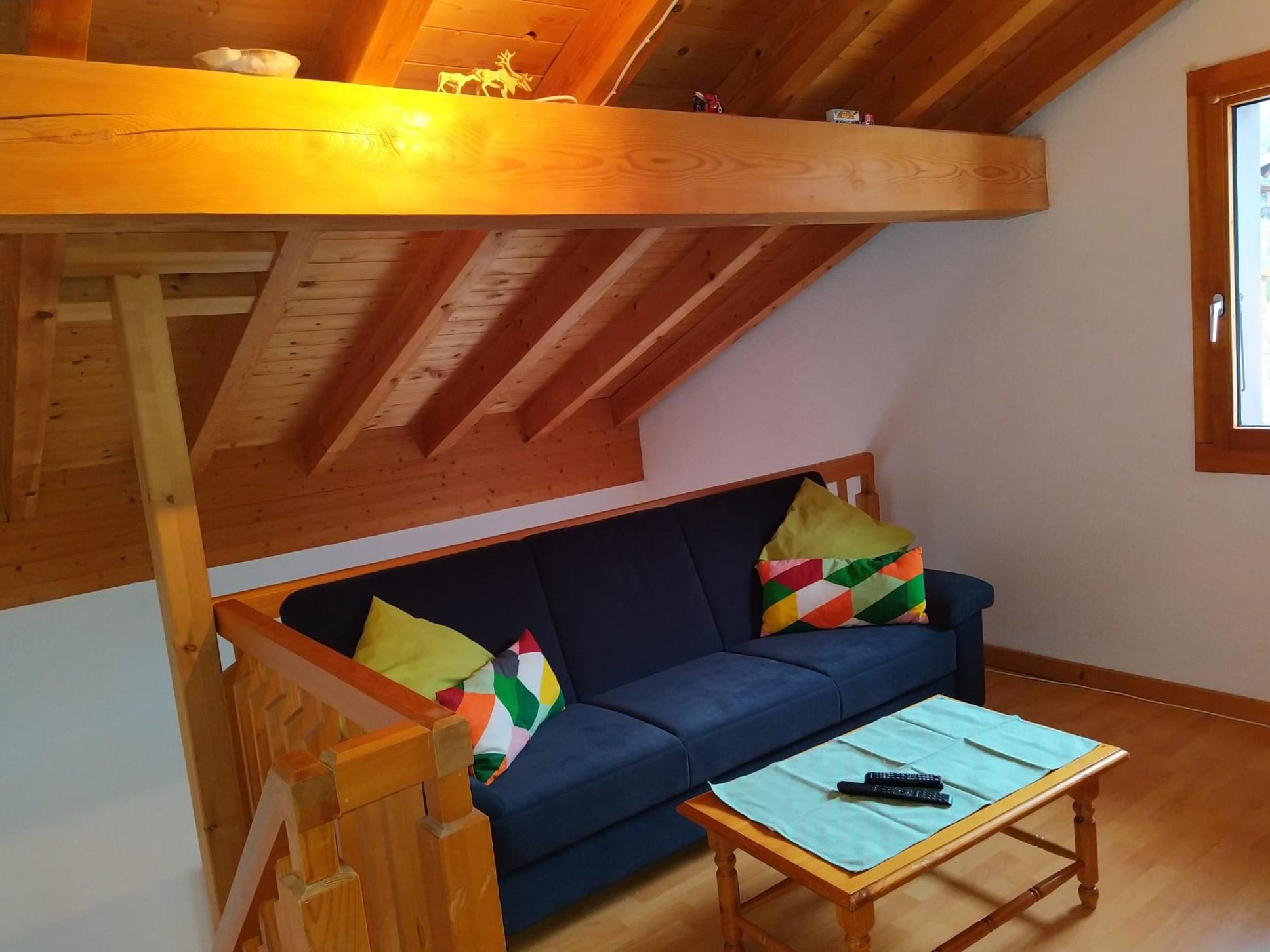 Die Ferienwohnung im Haus Mischi / Aletschpark ist im 2. OG und eine 3 1/2 Zimmer Maisonette Wohnung mit 1 Schlafzimmer, Galerie Wohnraum, Küche Wohnraum mit Balkon, Douche, WC und Schalfzimmer mit Balkon.