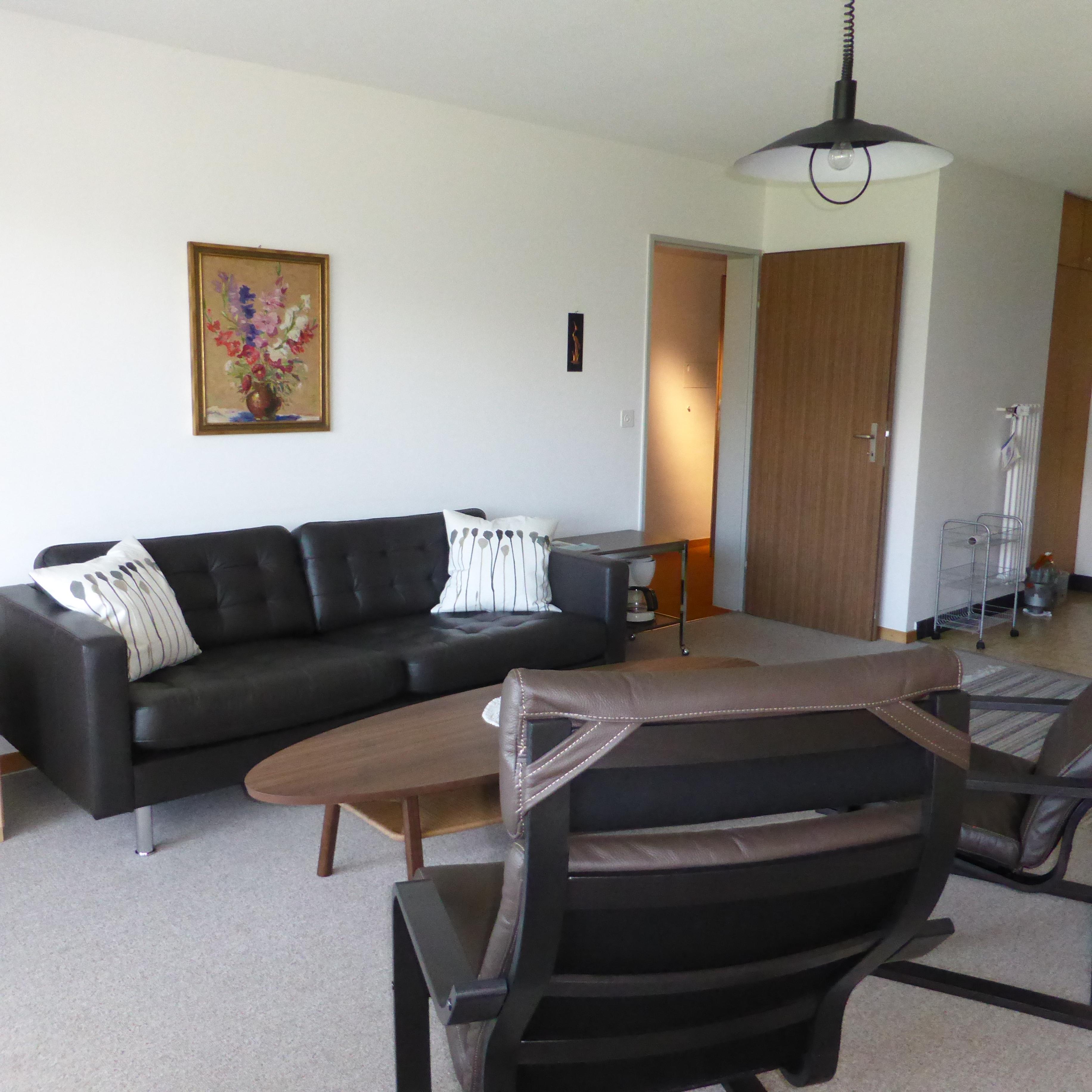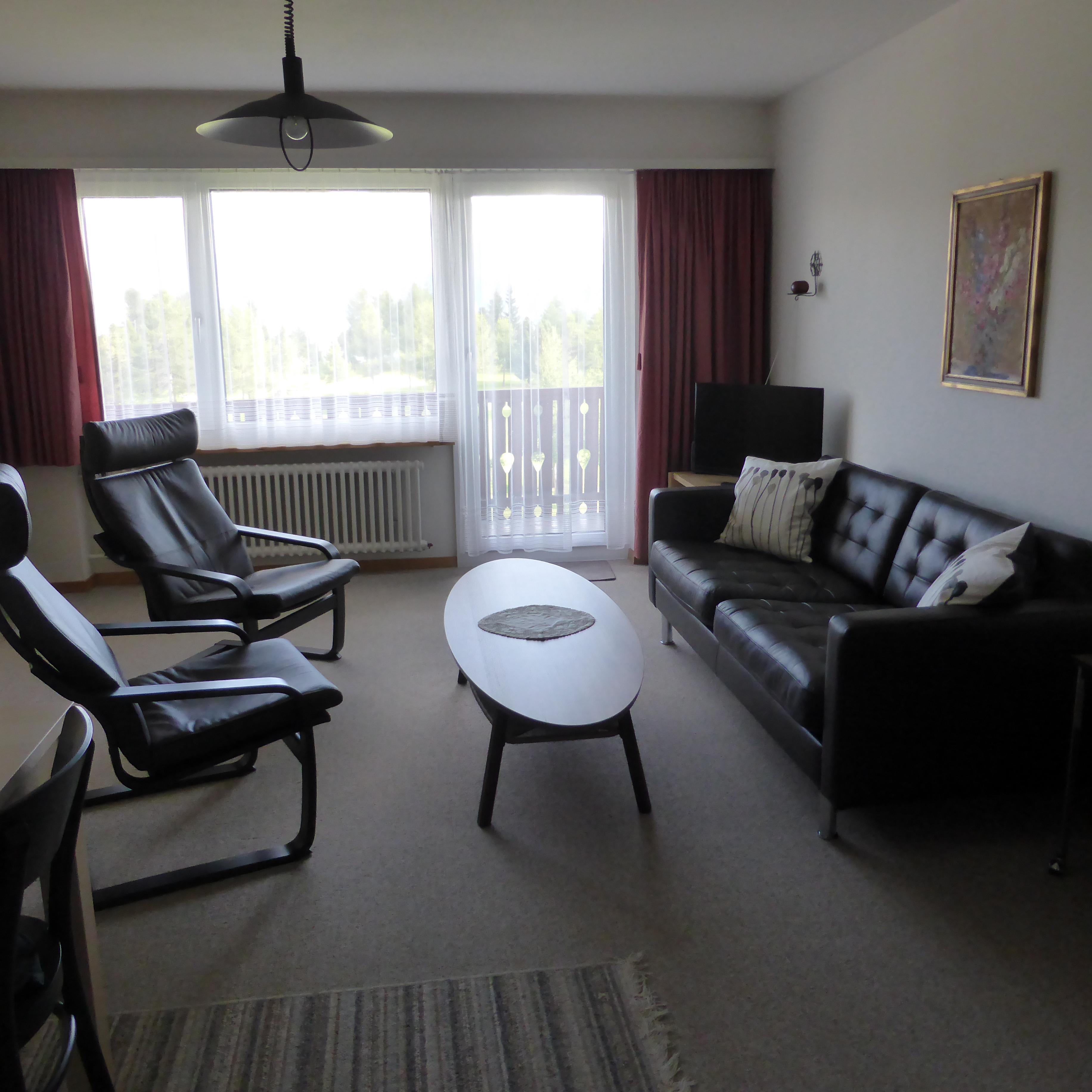 Die Ferienwohnung befindet sich in der 3. Etage des Apartmentkomplexes. Das Wohnzimmer und der Balkon sind aufgrund ihrer südlichen Lage von Sonnenschein durchflutet. Vom Wohnzimmer aus geniessen Sie einen erstklassigen Blick auf einen der höchsten Golfplätze Europas, das Breithorn und das Bättlihorn. Wenn Sie Golf spielen, empfehlen wir Ihnen, Ihre eigenen Golfschläger in die Hand zu nehmen und die neun Löcher in der frischen Bergluft zu spielen. Das Pitching Center liegt nur eine Gehminute von der Wohnung entfernt. Wenn Sie Ihren Schwung ausreichend geübt haben und bereit für ein Turnier sind, erreichen Sie das Clubhaus und die Rezeption innerhalb von 5 Minuten von der Ferienwohnung aus.