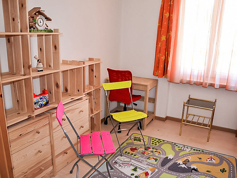 3-Zimmer-Wohnung 88 m2 im 2. Stock. Geräumig und hell, modern und geschmackvoll eingerichtet: offenes grosses Wohn-/Esszimmer mit 1 Doppeldiwanbett (160 cm, Länge 200 cm), Esstisch, Digital-TV, Flachbildschirm und Radio. Ausgang zum Balkon. 1 Doppelzimmer mit 1 Doppelbett (2 x 80 cm, Länge 200 cm). 1 Kinderzimmer mit 2 Betten (90 cm, Länge 200 cm). Küche (Backofen, Geschirrspüler, 4 Glaskeramikplatten, elektrische Kaffeemaschine, Kapseln für die Kaffeemaschine (Dolce Gusto) extra) mit Esstisch. Bad, sep. WC. Heizung. Grosser Balkon, Südlage. Balkonmöbel. Schöne Sicht auf die Berge und die Landschaft. Zur Verfügung: Waschmaschine, Wäschetrockner. Internet (WLAN). Bitte beachten: Nichtraucher-Unterkunft. Maximal 1 Haustier/Hund erlaubt. Bitte beachten: Ausziehbetten nicht auf gleicher Höhe. NL-00012328