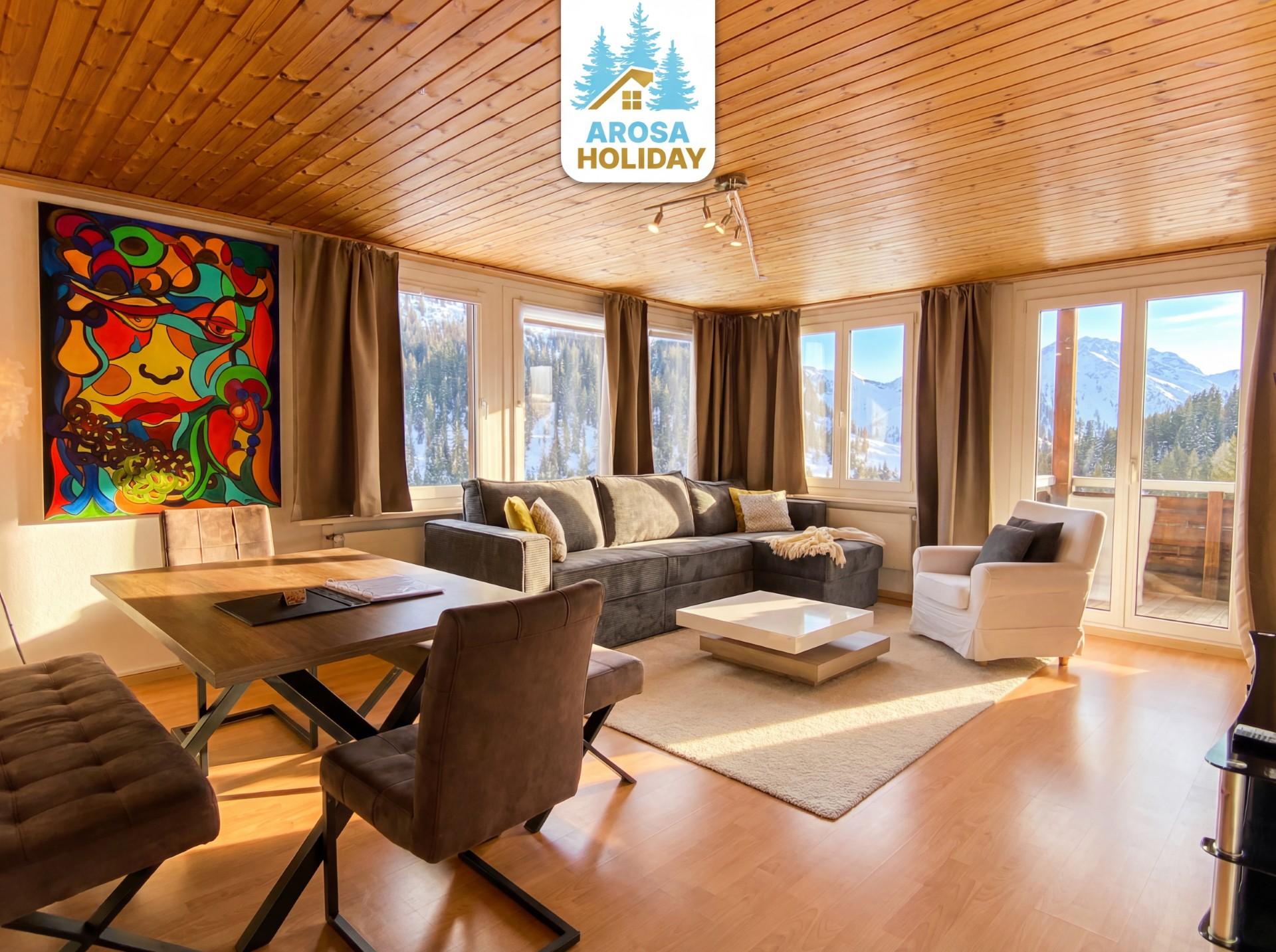 Die Wohnung Rosita im Haus Miraflor ist perfekt für 4-6 Urlauber. Sie bietet einen fantastischen Ausblick auf die 2000 Meter hohen Berge. Das Haus liegt zentral und sonnig in Arosa. Der kostenfreie Ortsbus fährt in der Nähe ab (ca. 300m Fussweg) und zu Fuss sind es ca. 5 Gehminuten zu den nächstgelegenem Supermarkt, Bank, Bar & Restaurants.