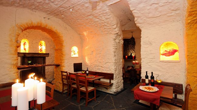 Das historische Gebäude beeindruckt durch seine Architektur und bietet im Inneren eine gemütliche Atmosphäre. Genießen Sie die Livemusik von unserem Pianisten "Gigi" entweder auf der Piazza Grande oder in der Taverne "Caverna degli Dei". Zum Hotel gehört auch ein Weinkeller mit einer großen Auswahl an edlen Tropfen zur Begleitung Ihres Abendessens.