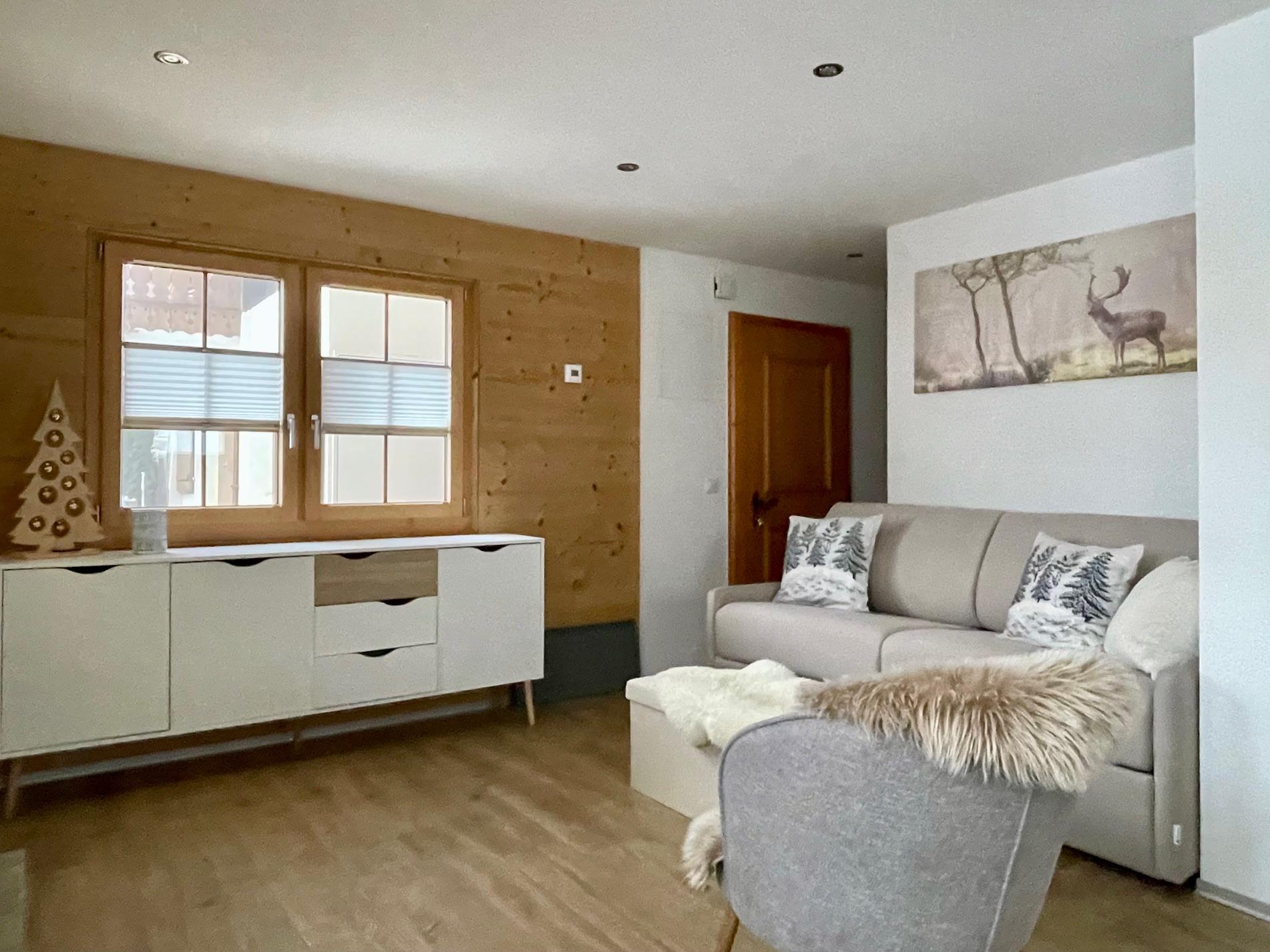 Die schöne, im 2021 komplett renovierte Parterre-Wohnung Halta 2 (Eija 23) befindet sich ca. 300m unterhalb vom Dorfzentrum Blatten. Sehr ruhige Lage mit privatem Gartensitzplatz. Die Wohnung verfügt über 1 Schlafzimmer, Wohnraum (SAT-TV, DAB Radio) mit Schlafsofa, moderne Küche (Geschirrspüler), Dusche und WC. Parkplatz vorhanden.