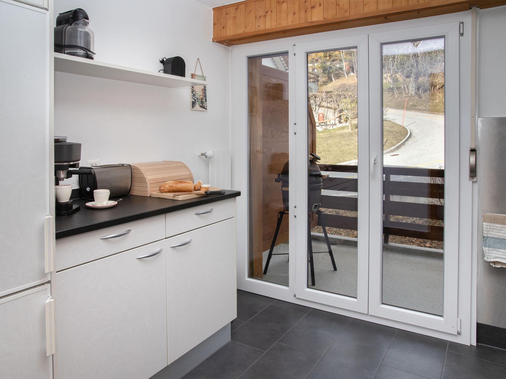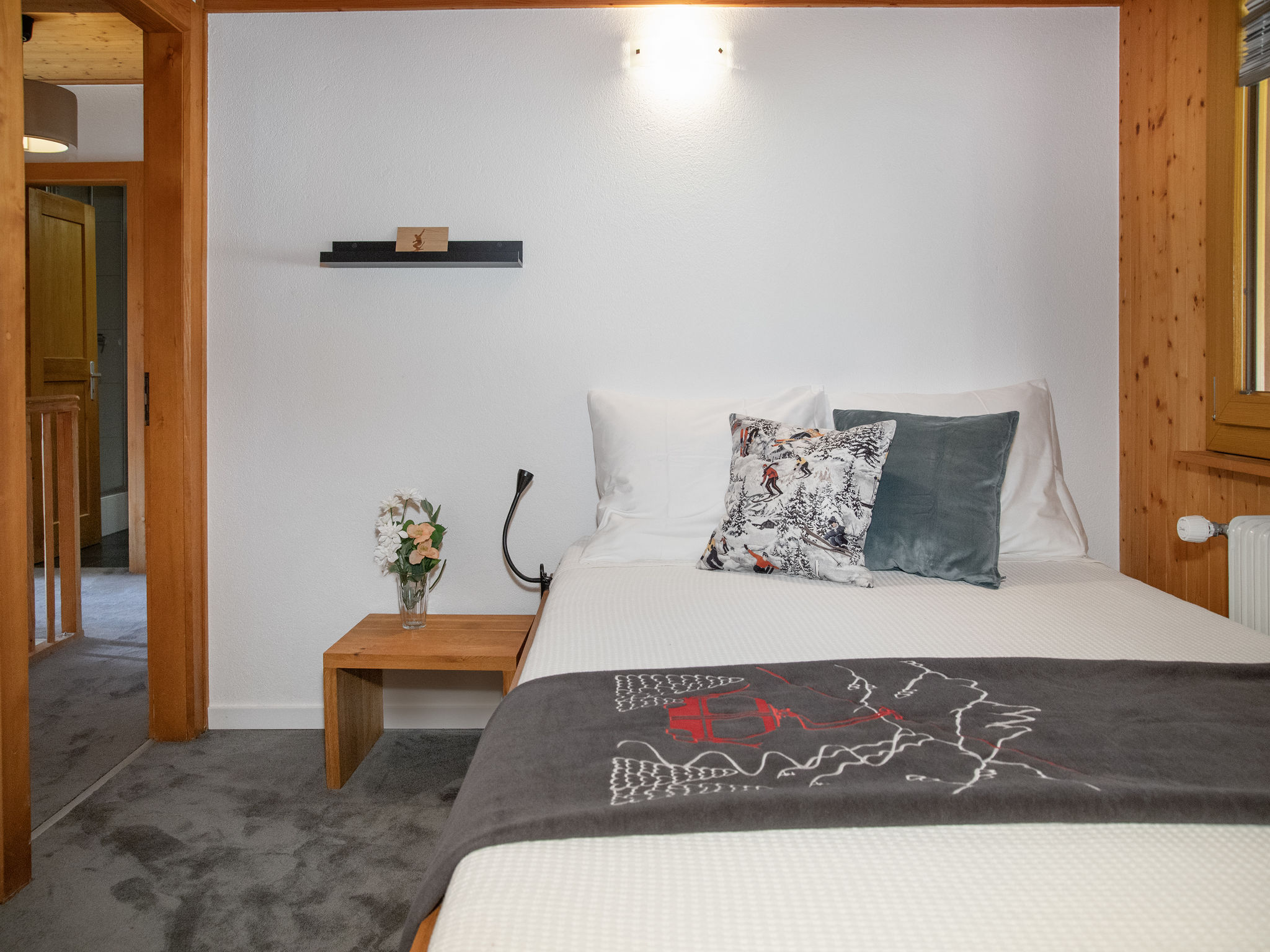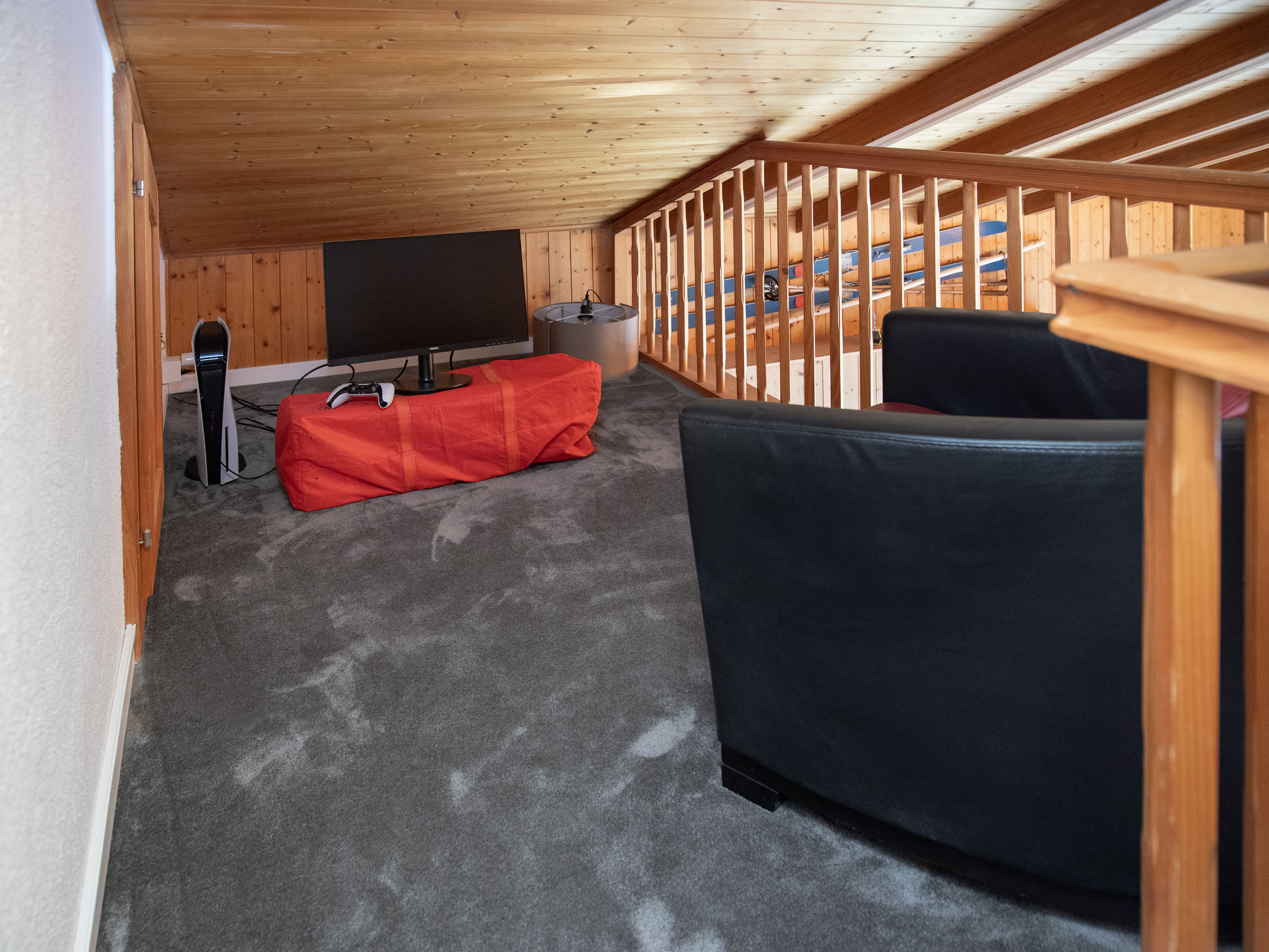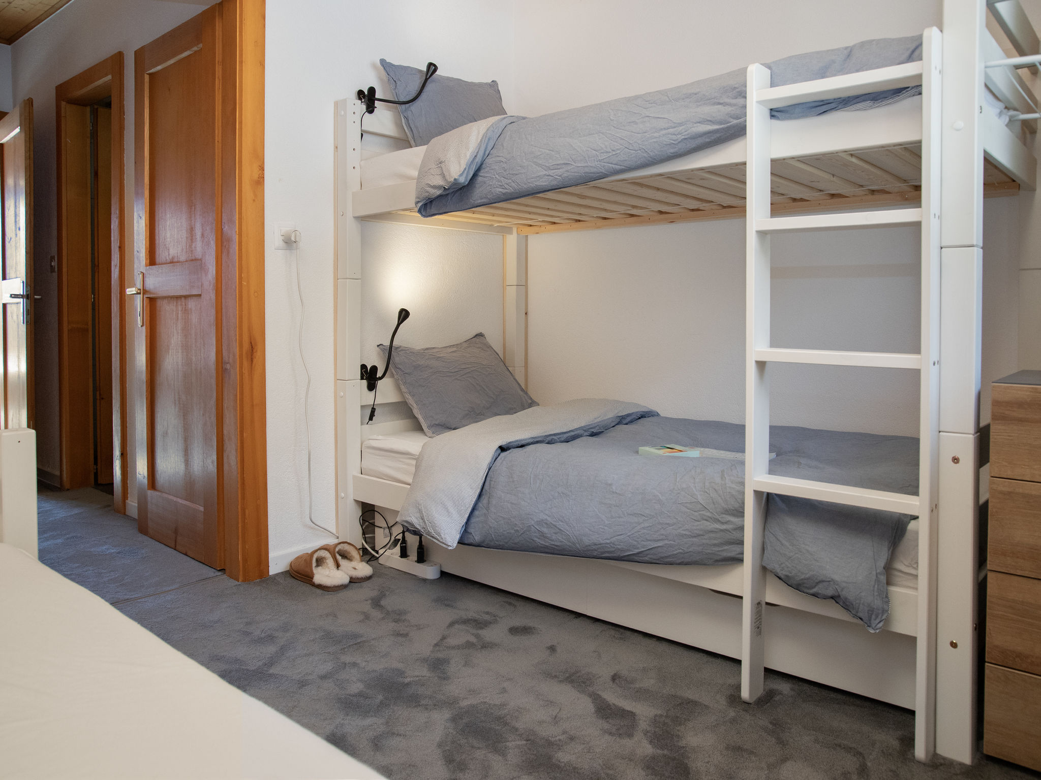 "Plein Soleil B 19", 4-Zimmer-Wohnung 90 m2 im 3. Stock, Südostlage. Geräumig, abgeschrägt, renoviert im Jahre 2024, komfortabel und schön eingerichtet: Eingang. Grosses Wohn-/Esszimmer mit Schwedenofen und Kabel-TV. Ausgang zum Balkon, Richtung Südosten. Küche (4 Induktionskochplatten, Wasserkocher, elektrische Kaffeemaschine, Kapseln für die Kaffeemaschine (nespresso) extra, Racletteofen, Fondue Set (Käse)). Ausgang zum Balkon, Richtung Nordosten. Bad/WC. Obergeschoss: 1 grosses Zimmer mit 1 Doppelbett (2 x 90 cm, Länge 200 cm). Ausgang zum Balkon, Richtung Südosten. 1 Zimmer mit 1 Bett (90 cm, Länge 200 cm), 1 x 1 Etagenbetten (90 cm, Länge 200 cm). 1 Zimmer mit 1 franz. Bett (1 x 140 cm, Länge 200 cm). Kleine Galerie mit Kabel-TV. Dusche/WC. Zur Verfügung: Internet (WLAN, gratis). Bitte beachten: Nichtraucher-Unterkunft.