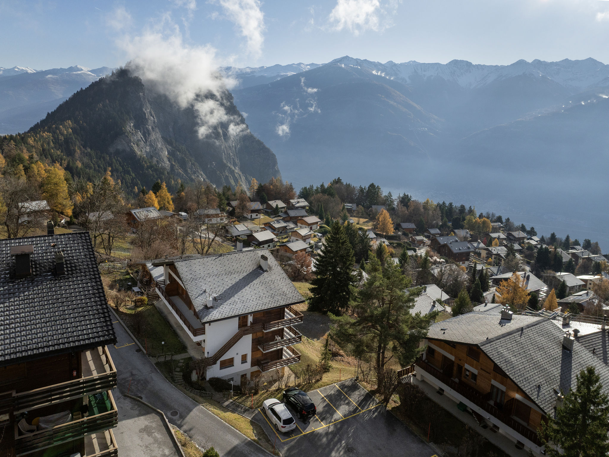 Appartementhaus "Plein Soleil B", auf 3 Stockwerken. Im Ortsteil Chevalley, 1.2 km vom Zentrum von d'Ovronnaz, ruhige, sonnige Lage, Richtung Südwesten. Im Hause: Skiraum, Waschmaschine (zur Mitbenutzung, extra), Trockenraum. Zufahrt bis 30 m zum Haus. Im Winter bitte Schneeketten mitbringen. Parkplatz Nr. 19 (beschränkte Anzahl) beim Haus. Einkaufsgeschäft 1.2 km, Restaurant 260 m, Bushaltestelle "Plein Soleil" 80 m, Thermalbad 300 m. Skipisten 1.5 km, Skibushaltestelle 270 m. Bitte beachten: kein Fahrstuhl vorhanden. Babyausstattung auf Anfrage (extra). Gratis Skibus.