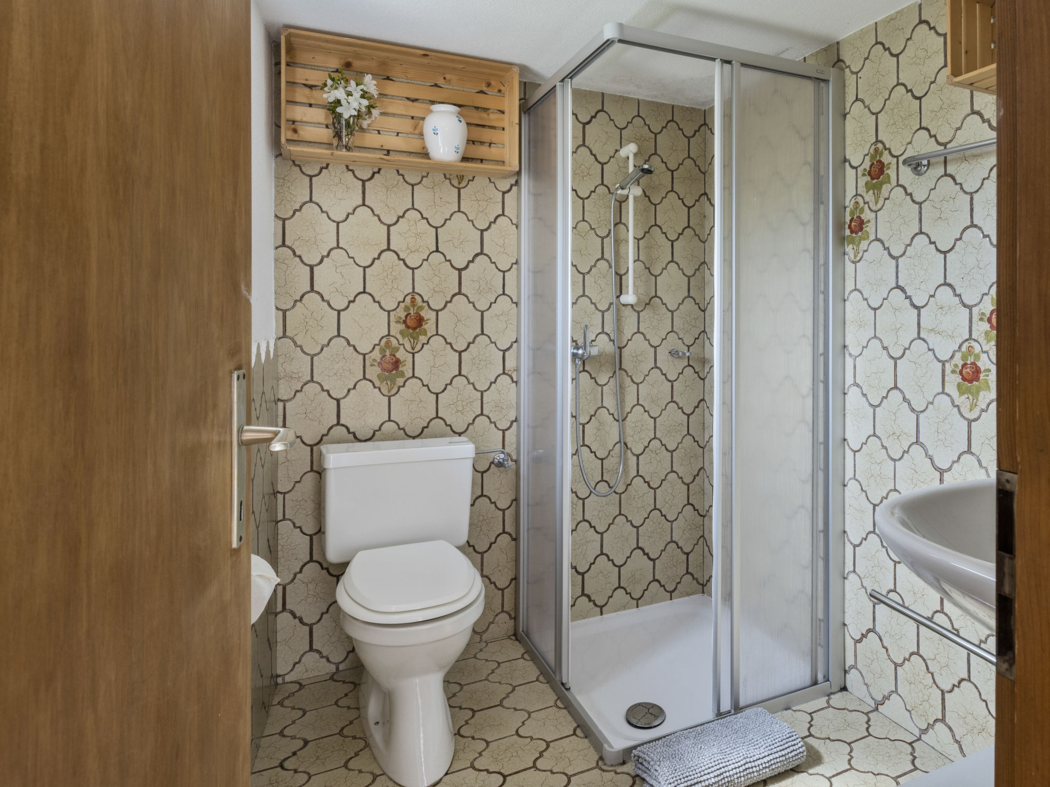 "Rosa", 1-Zimmer-Haus 44 m2. Einfach und gemütlich eingerichtet: Wohn-/Schlafzimmer mit 1 franz. Bett (160 cm, Länge 200 cm), Esstisch und E-Heizung. Offene Küche (3 Kochplatten, Backofen). Ausgang zum Garten, zum Gartensitzplatz. Dusche/WC. Holzheizung. Gartensitzplatz 24 m2, Rasen. Terrassenmöbel, Gartengrill, Liegestühle (2). Sehr schöne Sicht auf die Berge, das Tal und die Landschaft. Bitte beachten: Nichtraucher-Haus. Maximal 1 Haustier/Hund erlaubt. Boiler 120 l. Pelett-Kamin! NL-00005105