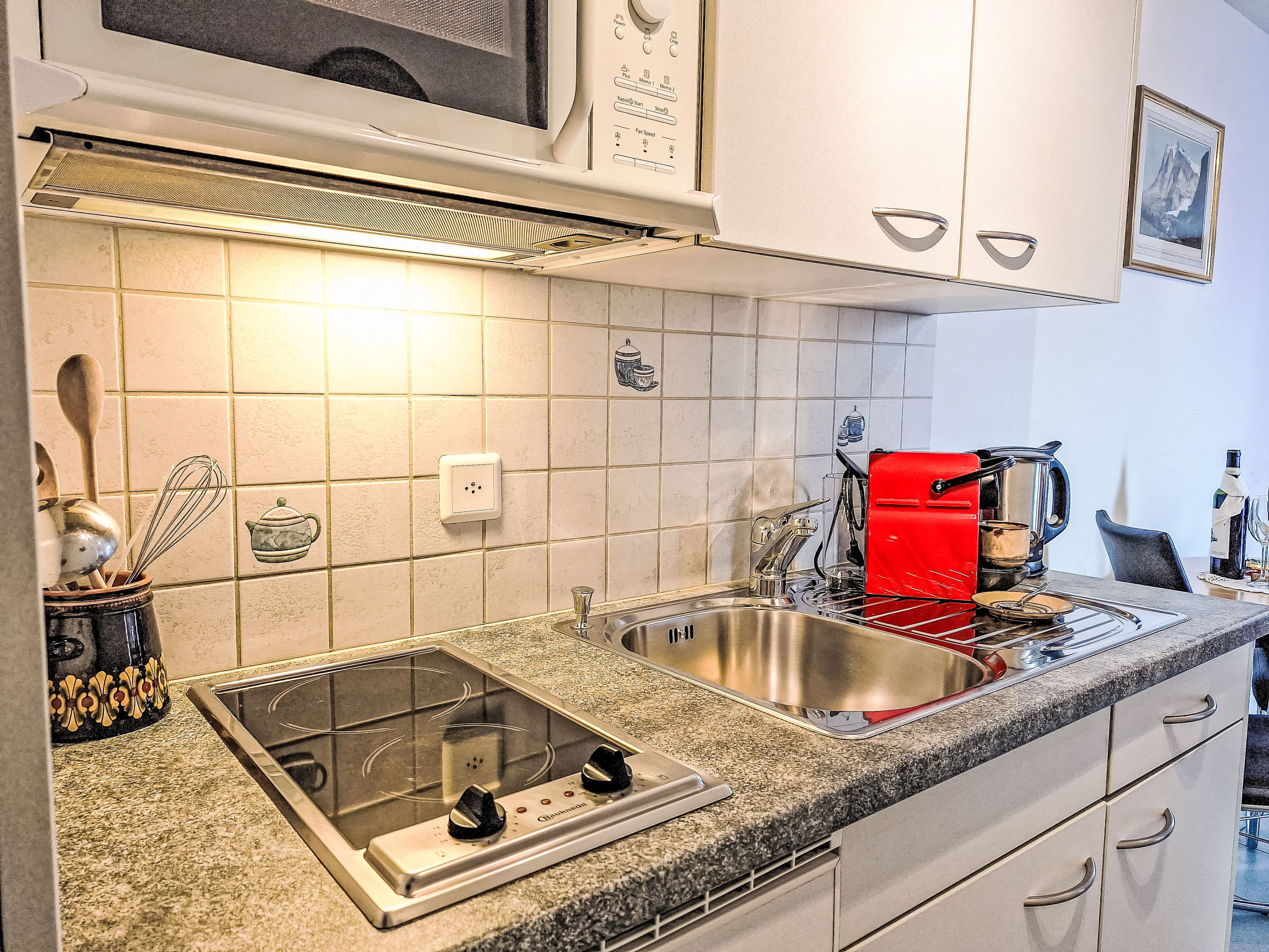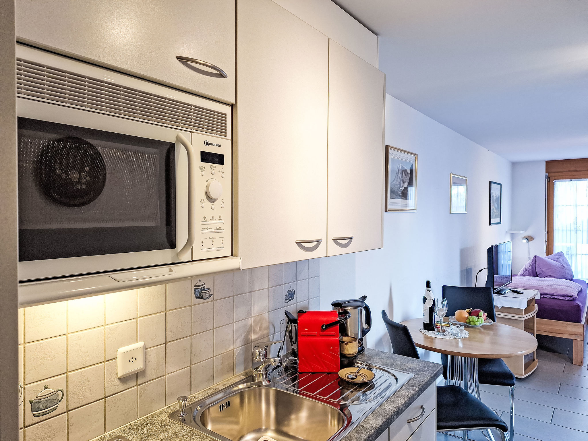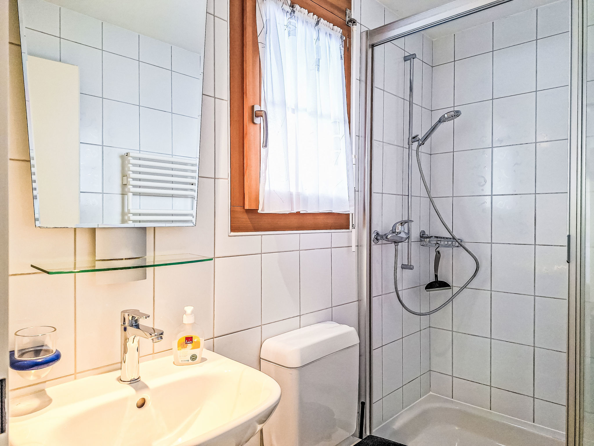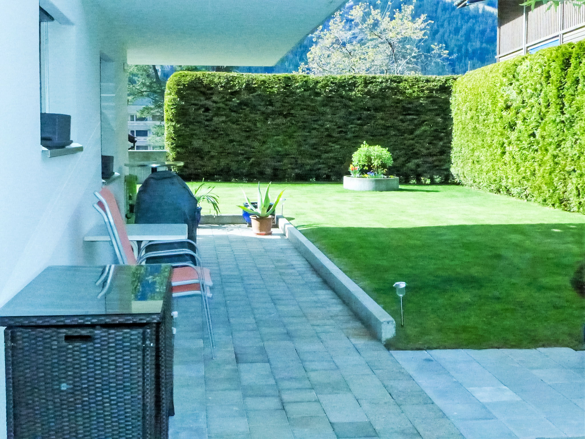 1-Zimmer-Wohnung 23 m2, im Erdgeschoss, Westlage. Zweckmässig eingerichtet: Wohn-/Schlafzimmer mit 2 Betten (90 cm, Länge 200 cm), Kabel-TV (Flachbildschirm). Ausgang zum Gartensitzplatz, Richtung Süden und Richtung Westen. Offene Küche (2 Glaskeramikplatten, Mikrowelle, elektrische Kaffeemaschine, Racletteofen, Fondue Set (Käse)). Dusche/WC. Natursteinboden. Gartensitzplatz, Südlage und Westlage. Terrassenmöbel, Gartengrill, Liegestühle. Schöne Sicht auf die Berge und Eiger. Zur Verfügung: Telefon (extra). Internet (Wireless LAN, gratis). Parkplatz (überdacht). Bitte beachten: Nichtraucher-Unterkunft. Eigener Eingang, Feuerlöscher.