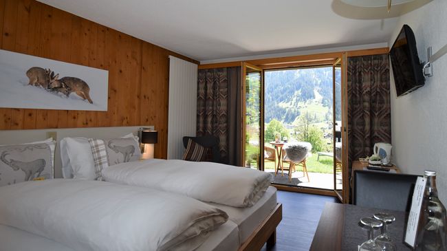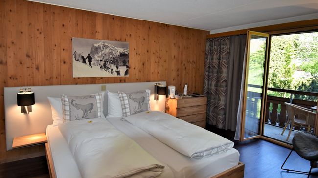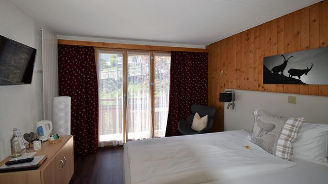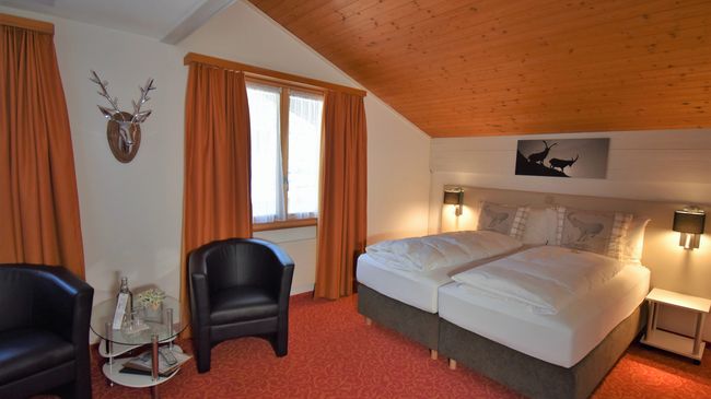 Gepflegtes Nichtraucher Bed & Breakfast ***Hotel im Chaletstil, welches von der Besitzerfamilie persönlich geführt wird. Zentral gelegen nur 400m vom Bahnhof, Hauptbusterminal, Einkaufszentrum und Sportzentrum entfernt. Unsere Südzimmer, DZ Enzian, DZ Edelweiss, die Juniorsuite Eiger und das Appartement Nordwand, verfügen alle über einen atemberaubenden Blick auf die Eigernordwand und das Tal von Grindelwald. Am Morgen verwöhnen wir sie von 7.30 - 10.00 Uhr mit einem reichhaltigen Frühstückbuffet mit lokalen Köstlichkeiten. Eine gemütliche Lounge mit Selbstbedienungskühlschrank, WLAN, Outdoor-Küche mit Mikrowelle und Elektrogrill, eigener Parkplatz, Outdoor Tischtennistisch, Bocciabahn, Sandkasten, Sauna , Fitnessraum und indoor Tischtennistisch, Garten mit Liegewiese und der gratis Eintritt mit unserer Gästekarte im Hallenbad des Sportzentrum Grindelwald runden das Angebot ab.