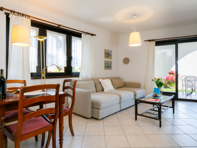 "Residenza Miralago Apt. A4", 1-Zimmer-Wohnung 68 m2, im Erdgeschoss. Wohn-/Esszimmer mit TV. Schlafnische mit 2 Betten. Kochnische (Backofen). Bad/WC. Gartensitzplatz. Terrassenmöbel. Sicht auf den See. Anstelle eines abgeschlossenen Schlafzimmers befinden sich manche Schlafplätze in einem offenen Bereich (Galerie, Nische etc.). NL-00003536