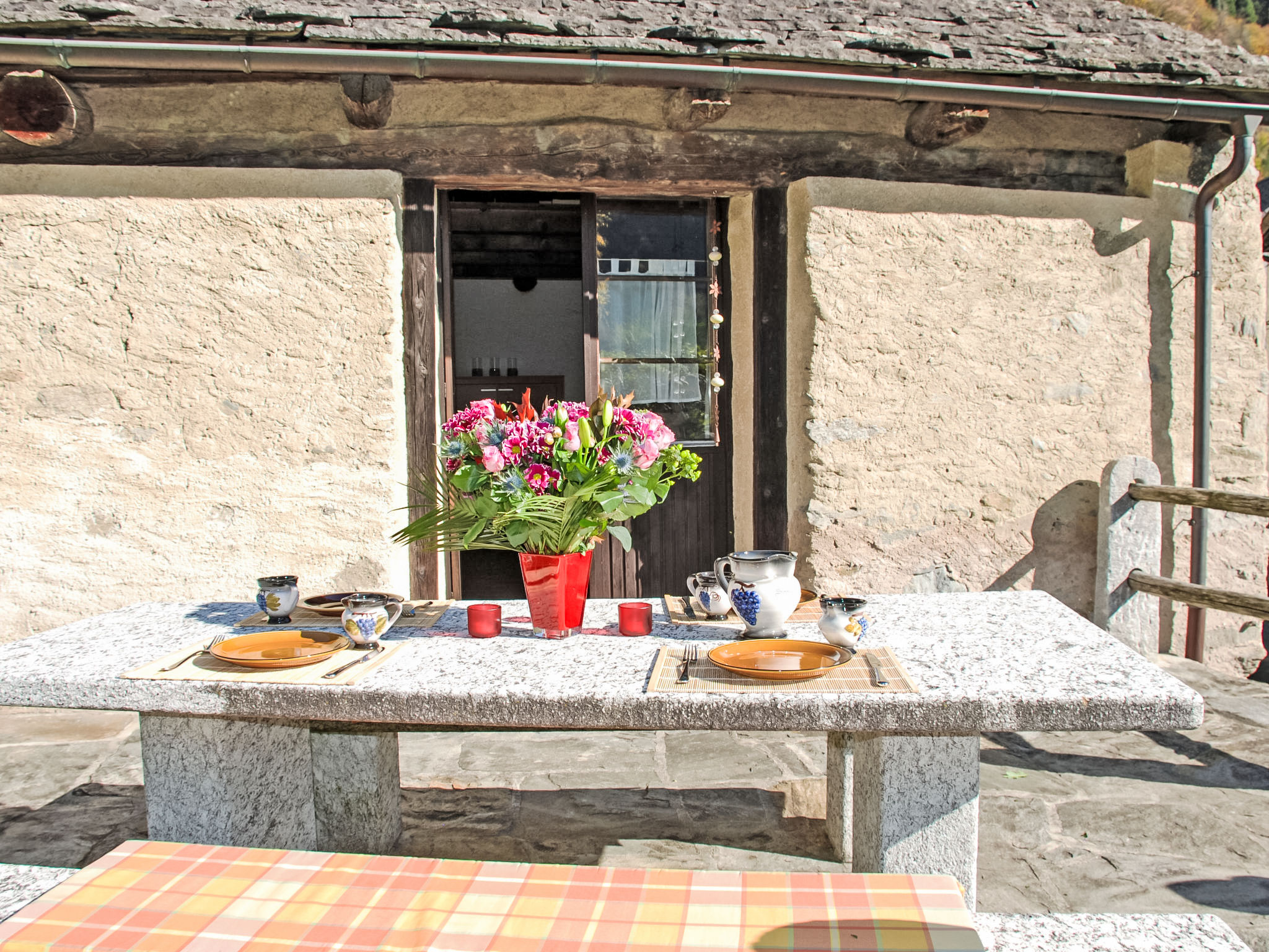 "Rustico Cristallo", 3-Zimmer-Haus auf 3 Stockwerken, Südlage. Hell, teilweise abgeschrägt, komfortabel und geschmackvoll eingerichtet: grosse Wohnküche (Backofen, 4 Glaskeramikplatten, elektrische Kaffeemaschine, Kapseln für die Kaffeemaschine (Caffitaly) extra, Racletteofen, Fondue Set (Käse)) mit offenem Kamin, Esstisch und Radio. Ausgang zum Gartensitzplatz. Dusche/WC. E-Heizung, Holzheizung. Obergeschoss: Wohnzimmer mit Sat-TV und Flachbildschirm. Ausgang zum Garten, zum Gartensitzplatz. 1 Doppelzimmer mit 1 Doppelbett (2 x 80 cm, Länge 200 cm). Ausgang zur Terrasse. 2. Obergeschoss: (steile Treppe) abgeschrägte, offene Galerie, Deckenhöhe 80 - 100 cm mit 2 Betten (90 cm, Länge 200 cm). Salon. Terrasse teilweise überdacht, Südlage, Gartensitzplatz. Terrassenmöbel, Gartengrill (mobil), Liegestühle (2), Sitzplatz. Schöne Panoramasicht auf die Berge, die Landschaft und die Ortschaft. Zur Verfügung: Kinderhochstuhl, Babybett bis 2 Jahre (extra), Haartrockner, Holz (extra). Internet (WLAN). Bitte beachten: nicht geeignet für Kinder unter 6 Jahren. Nichtraucher-Haus. Maximal 1 kleines Haustier/Hund erlaubt. Feuerlöscher. Achtung - Die Aufsicht der Kleinkinder ist wegen der geländerlosen Treppe und offenen Galerie sorgepflicht der Eltern und jede Haftung wird strikte abgelehnt! Anstelle eines abgeschlossenen Schlafzimmers befinden sich manche Schlafplätze in einem offenen Bereich (Galerie, Nische etc.). NL-00001822