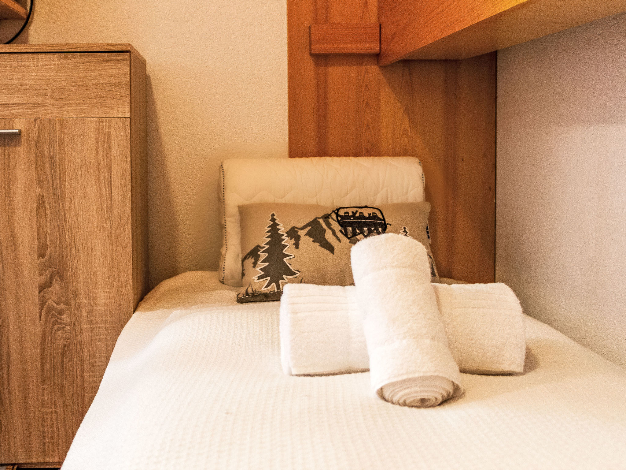 "Ambassador II Apt 13", 1-Zimmer-Wohnung 34 m2 im 3. Stock. Komfortabel eingerichtet: Wohn-/Esszimmer mit 2 Wandschrankbetten (90 cm, Länge 190 cm), Kabel-TV (Flachbildschirm). Eingang mit 1 Wandklappbett (80 cm, Länge 190 cm). Kochnische (Backofen, Geschirrspüler, Wasserkocher, Mikrowelle, elektrische Kaffeemaschine, Kapseln für die Kaffeemaschine (Dolce Gusto) extra, Racletteofen, Fondue Set (Käse)). Dusche/WC. Balkon, Südlage Balkon, Westlage. Balkonmöbel. Eingeschränkte Sicht auf die Berge. Zur Verfügung: Haartrockner. Bitte beachten: Nichtraucher-Unterkunft. Anstelle eines abgeschlossenen Schlafzimmers befinden sich manche Schlafplätze in einem offenen Bereich (Galerie, Nische etc.).