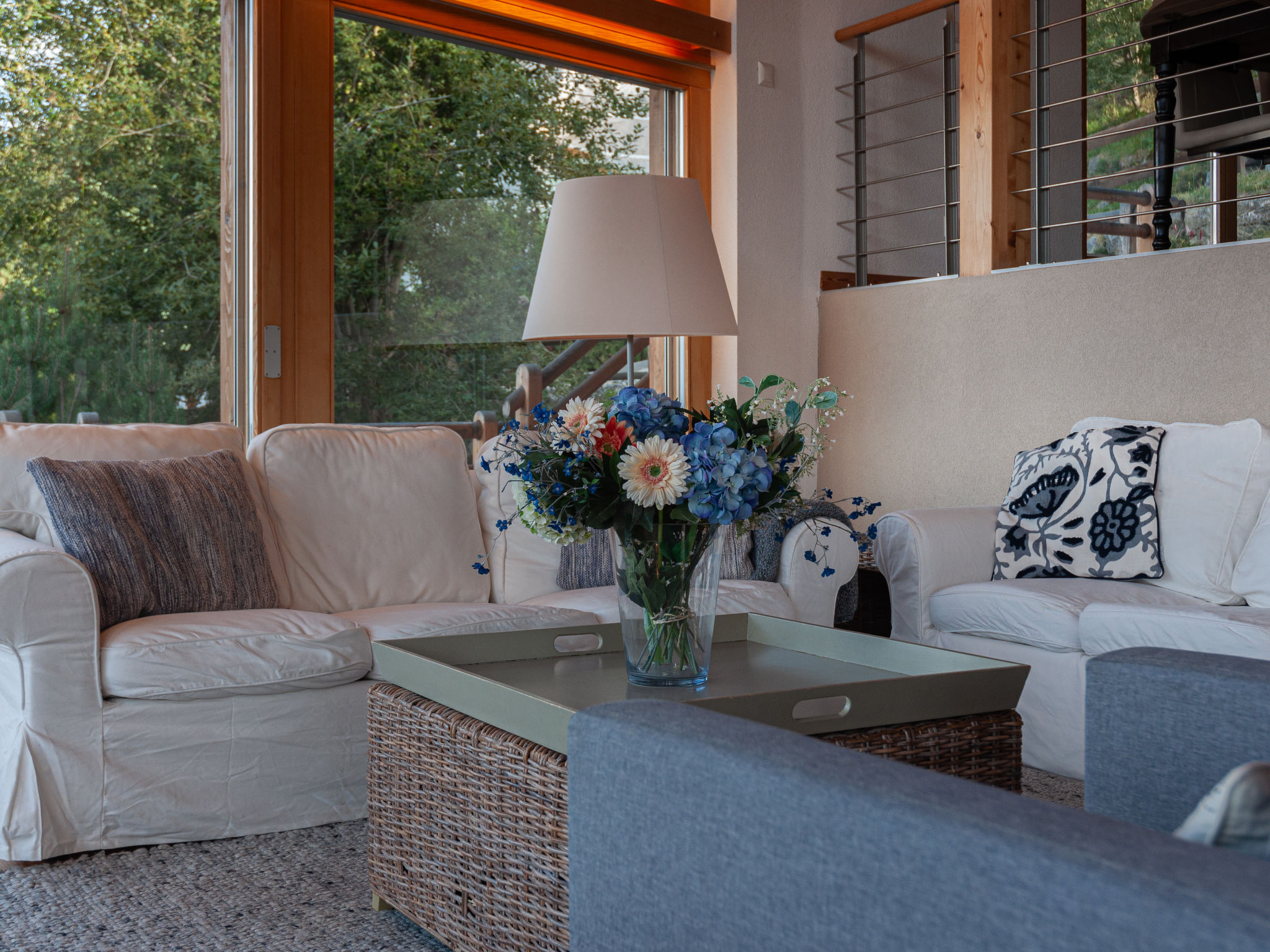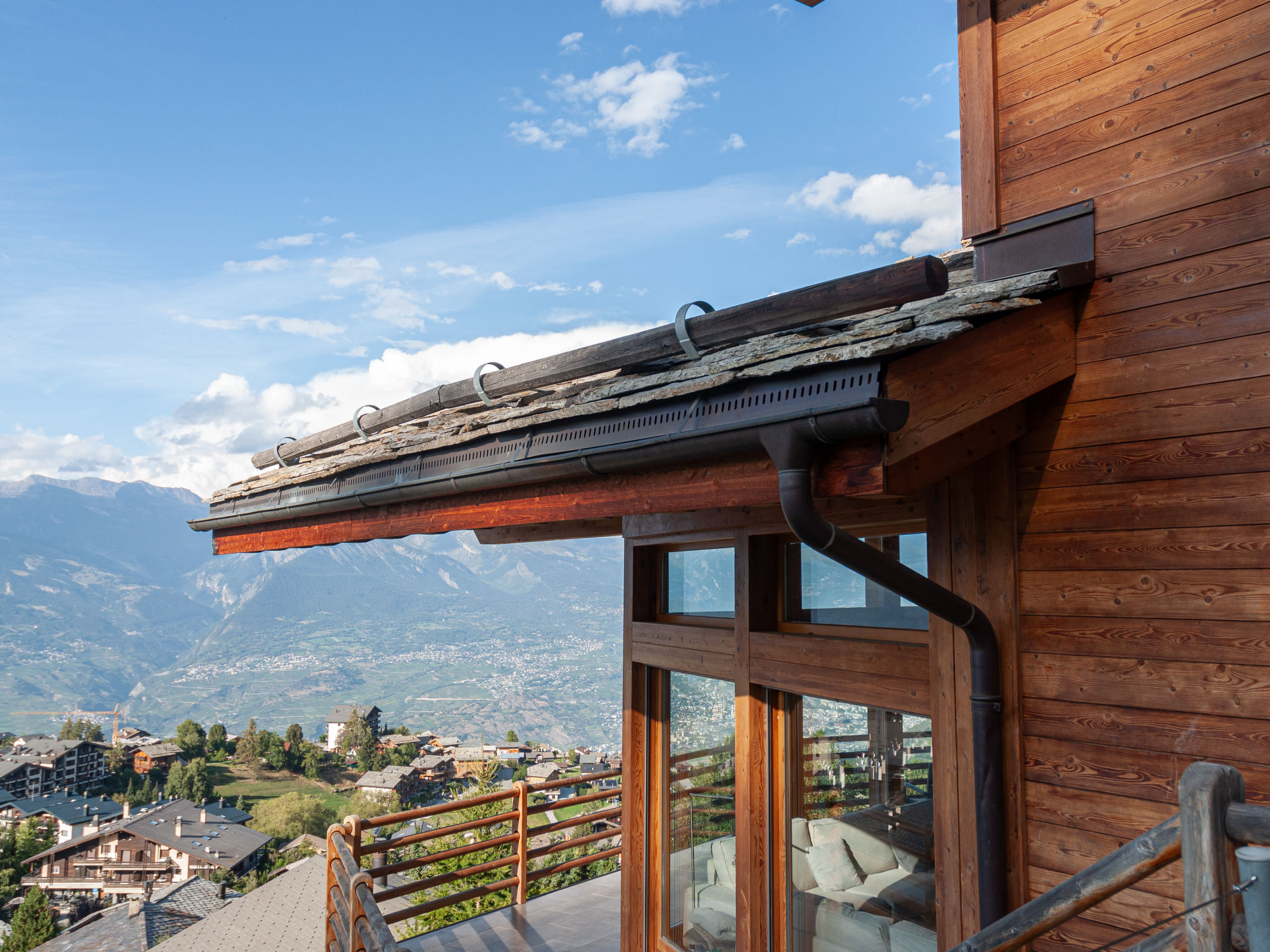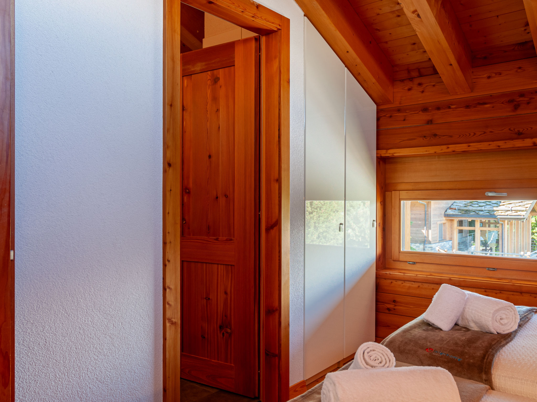 "Chalet Aquarius", 6-Zimmer-Chalet 245 m2 auf 3 Stockwerken. Modern und geschmackvoll eingerichtet: grosses Wohn-/Esszimmer 85 m2 mit Panoramafenster mit Schwedenofen, Kabel-TV und DVD. Offene Küche (Backofen, Geschirrspüler, 5 Induktionskochplatten, Toaster, Wasserkocher, Mikrowelle, elektrische Kaffeemaschine, Kapseln für die Kaffeemaschine (Nespresso) extra, Racletteofen, Fondue Set (Käse)). Sep. WC. Heizung. Unteres Geschoss: 1 Zimmer mit 2 Betten (90 cm, Länge 200 cm), Dusche/WC. 2 Zimmer, jedes Zimmer mit 2 Betten (90 cm, Länge 200 cm). Bad/Dusche, sep. WC, Sauna. Obergeschoss: 1 Zimmer mit 1 Doppelbett (2 x 90 cm, Länge 200 cm), Dusche/WC. 1 Zimmer mit 1 Doppelbett (2 x 90 cm, Länge 200 cm), Dusche/WC. 4 Balkone, Nordostlage und Nordwestlage, Terrasse, Westlage. Terrassenmöbel, Gartengrill, Liegestühle (8). Panoramasicht auf die Berge, das Tal und die Ortschaft. Zur Verfügung: Waschmaschine, Wäschetrockner, Kinderhochstuhl, Babybett, Haartrockner. Internet (WLAN, gratis). Parkplatz (2 Autos), Garage (2 Autos), Höhe 200 cm, Breite 245 cm. Bitte beachten: Nichtraucher-Unterkunft.