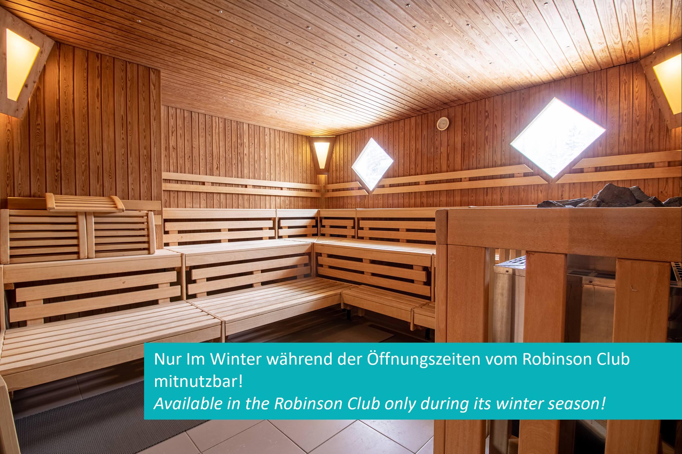 Während der Wintersaison können in dem anliegenden Hotel, der Swimming Pool, Wellness, Fitness sowie der Skishuttle zu deren Öffnungszeiten kostenfrei mitbenutzt werden. In der Sommersaison ist das Hotel geschlossen. Das Hotel ist nur für Erwachsene.
